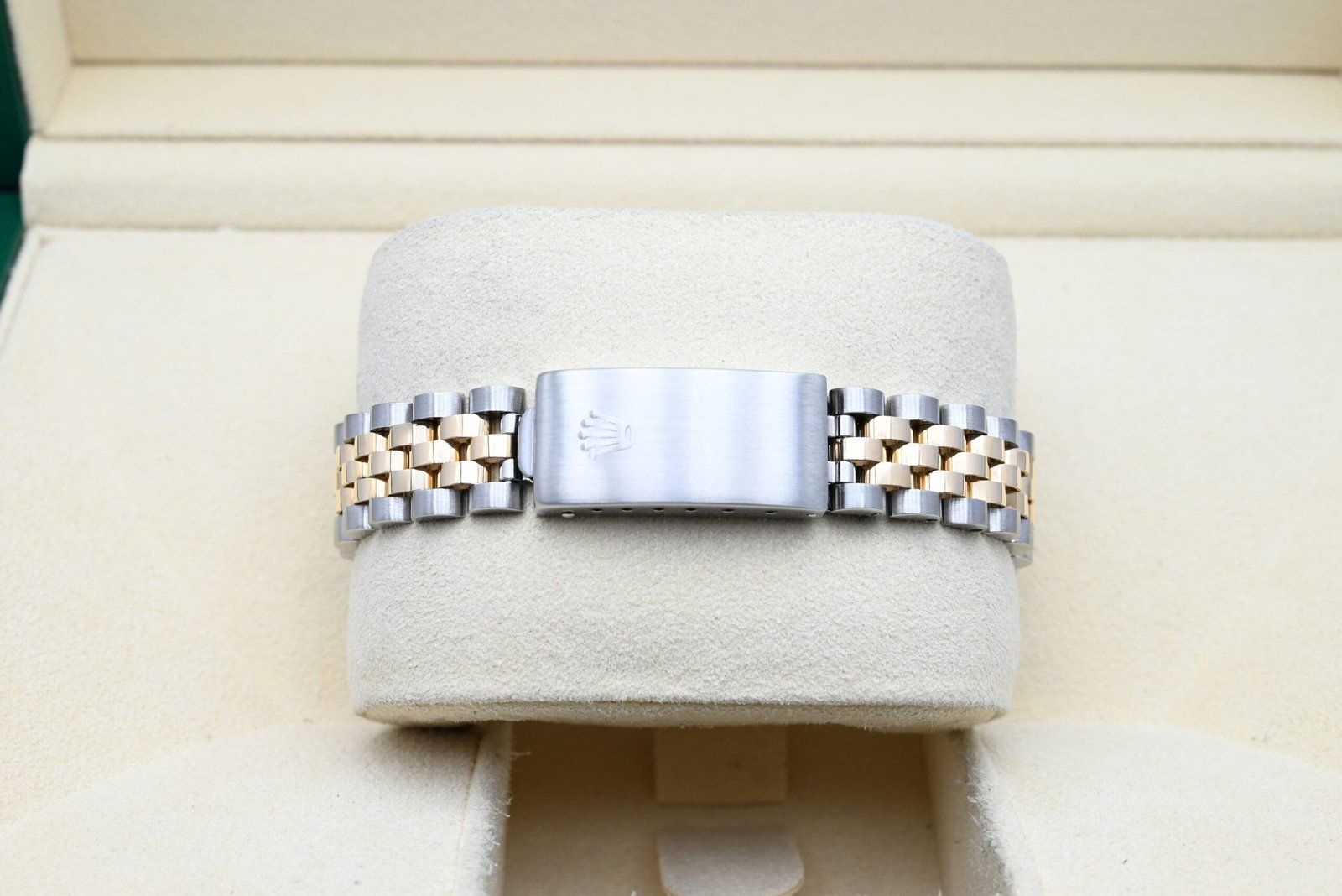 - Légères traces d’usure telles que de fines rayures ou micro-rayures. Le boîtier, la lunette et le bracelet conservent leurs arêtes nettes et leur forme générale. Peut avoir été poli professionnellement sans altérer les contours d’origine. Entièrement fonctionnelle mécaniquement.