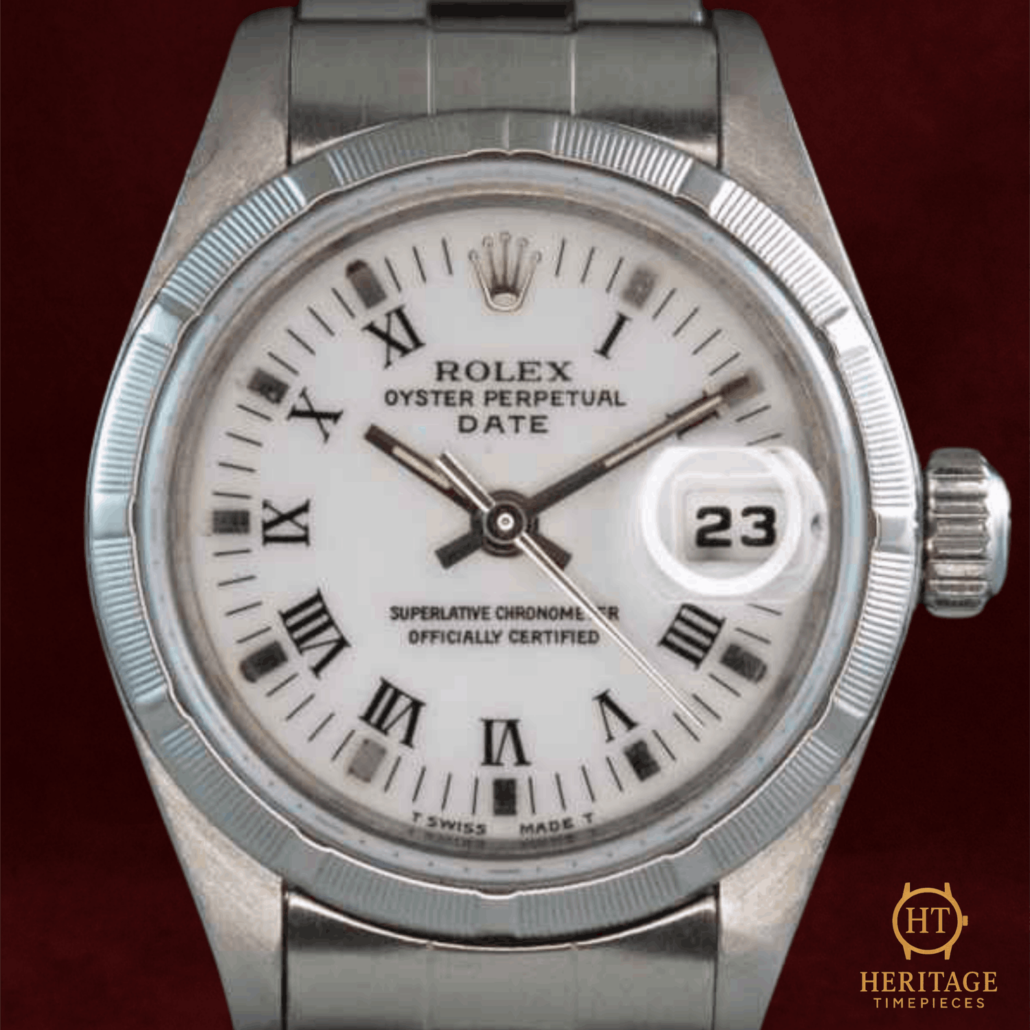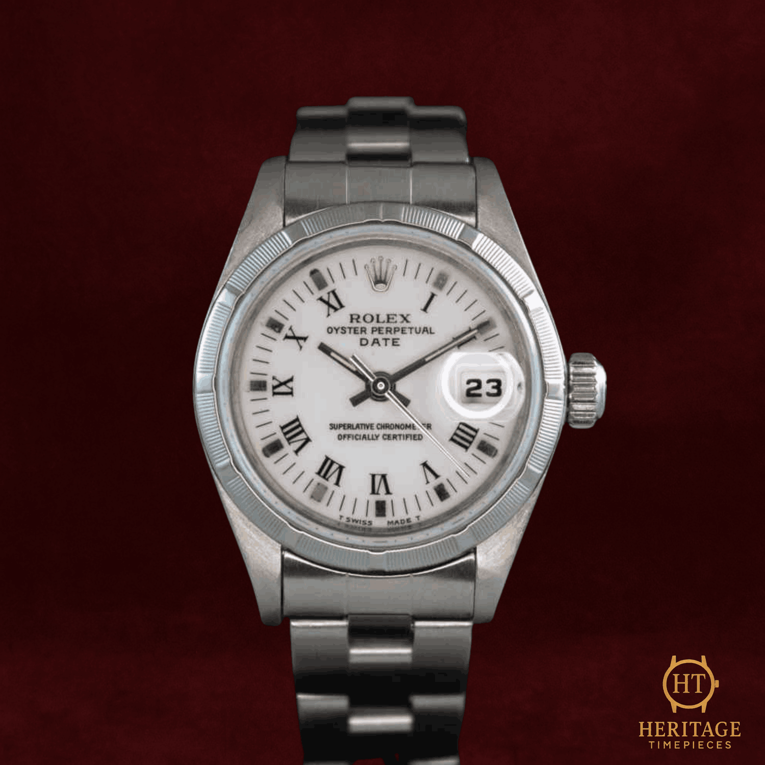 Heritage Narrative The Rolex Lady Date represents Rolex’s commitment to offering the same mechanical integrity and design language of its professional models in a refined, smaller format. Introduced as part of the classic Oyster Perpetual family, the Lady Date was designed for everyday wear, combining elegance, durability, and true automatic watchmaking. Reference 69190 is a stainless steel execution that reflects the understated aesthetic of late-1990s Rolex production. Its smooth steel bezel, compact 26 mm Oyster case, and clean white dial create a timeless and versatile appearance that remains relevant decades later. Unlike many decorative ladies’ watches of the era, the Lady Date stays firmly rooted in Rolex’s tool-watch DNA. Powered by a reliable automatic movement and protected by a sapphire crystal, this model was built to be worn daily rather than treated as a delicate accessory. Its proportions, simplicity, and mechanical robustness make it one of the most honest and enduring ladies’ Rolex references. Technical Specifications Reference:69190 Year:1998 Movement:Rolex automatic mechanical movement, self-winding Case:26 mm stainless steel Oyster case with screw-down crown and caseback Bezel:Smooth stainless steel bezel Crystal:Scratch-resistant sapphire crystal Dial / Hands:White dial with applied hour markers and luminous hands Bracelet / Clasp:Stainless steel Oyster bracelet with folding clasp Water resistance:3 ATM (30 meters, factory rating) Condition & Inclusions Overall grade:Pre-owned — good condition with normal signs of age and wear consistent with use Service status:Movement running and tested Set:Watch only — no original box or documentation Shipping & Logistics Stored off-site and shipped fully insured within 1–3 business days.Worldwide shipping available; buyer responsible for any import duties or taxes. Shipping & Returns Complimentary insured worldwide shipping and a 14-day return window (watch must be returned in the same condition supplied). Each timepiece is authenticated, time-tested, and professionally prepared prior to dispatch. All shipments include secure packaging, tracking, and full insurance coverage.
