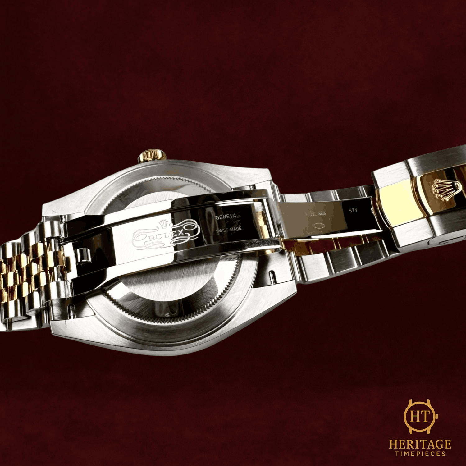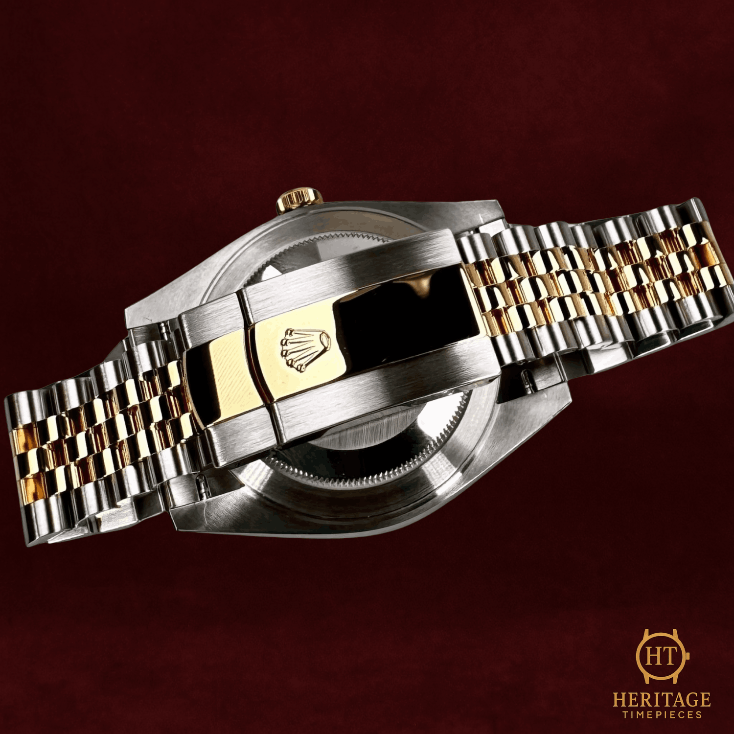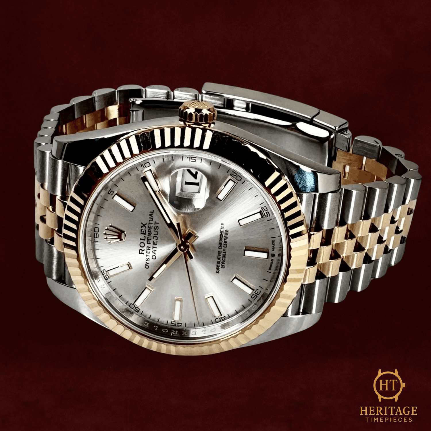Heritage Narrative The Rolex Datejust is one of the most influential wristwatches ever produced. Introduced in 1945, it set the standard as the first self-winding wristwatch with an automatically changing date display. Since then, the Datejust has evolved continuously while remaining unmistakably Rolex in both form and function. The Datejust 41, reference 126333, represents the modern two-tone interpretation of this historic model. Combining stainless steel with 18k yellow gold, Rolex’s Rolesor construction delivers a balance of durability, visual warmth, and unmistakable prestige. The fluted yellow gold bezel, originally developed to screw the case securely to ensure water resistance, has since become one of the brand’s most iconic design signatures. This 2022 unworn example features a refined silver dial with luminous index markers set in gold surrounds, offering excellent legibility while maintaining a clean, timeless appearance. Paired with the Jubilee bracelet, the watch leans toward classic elegance rather than sport, making it equally appropriate for formal wear or everyday use. Powered by Rolex’s latest-generation movement and finished to modern production standards, the Datejust 41 remains one of the most versatile and enduring luxury watches available today. Technical Specifications Reference:126333 Year:2022 Movement:Rolex Calibre 3235, automatic, chronometer-certified, 28,800 vph, approximately 70-hour power reserve Case:41 mm Oyster case in stainless steel with screw-down Twinlock crown and caseback Bezel:18k yellow gold fluted bezel Crystal:Scratch-resistant sapphire crystal with Cyclops magnifier over the date Dial / Hands:Silver dial with luminous index hour markers in gold surrounds and luminous hands Bracelet / Clasp:Stainless steel and 18k yellow gold Jubilee bracelet with folding Oysterclasp and Easylink comfort extension Water resistance:100 m / 330 ft (factory rating) Condition & Inclusions Overall grade:Unworn — mint condition Service status:Factory condition, no service required Set:Full set including original Rolex box, warranty certificate, booklets, and hang tags Shipping & Logistics Stored off-site and shipped fully insured within 1–3 business days.Worldwide shipping available; buyer responsible for any import duties or taxes. Shipping & Returns Complimentary insured worldwide shipping and a 14-day return window (watch must be returned in the same condition supplied). Each timepiece is authenticated, time-tested, and professionally prepared prior to dispatch. All shipments include secure packaging, tracking, and full insurance coverage.