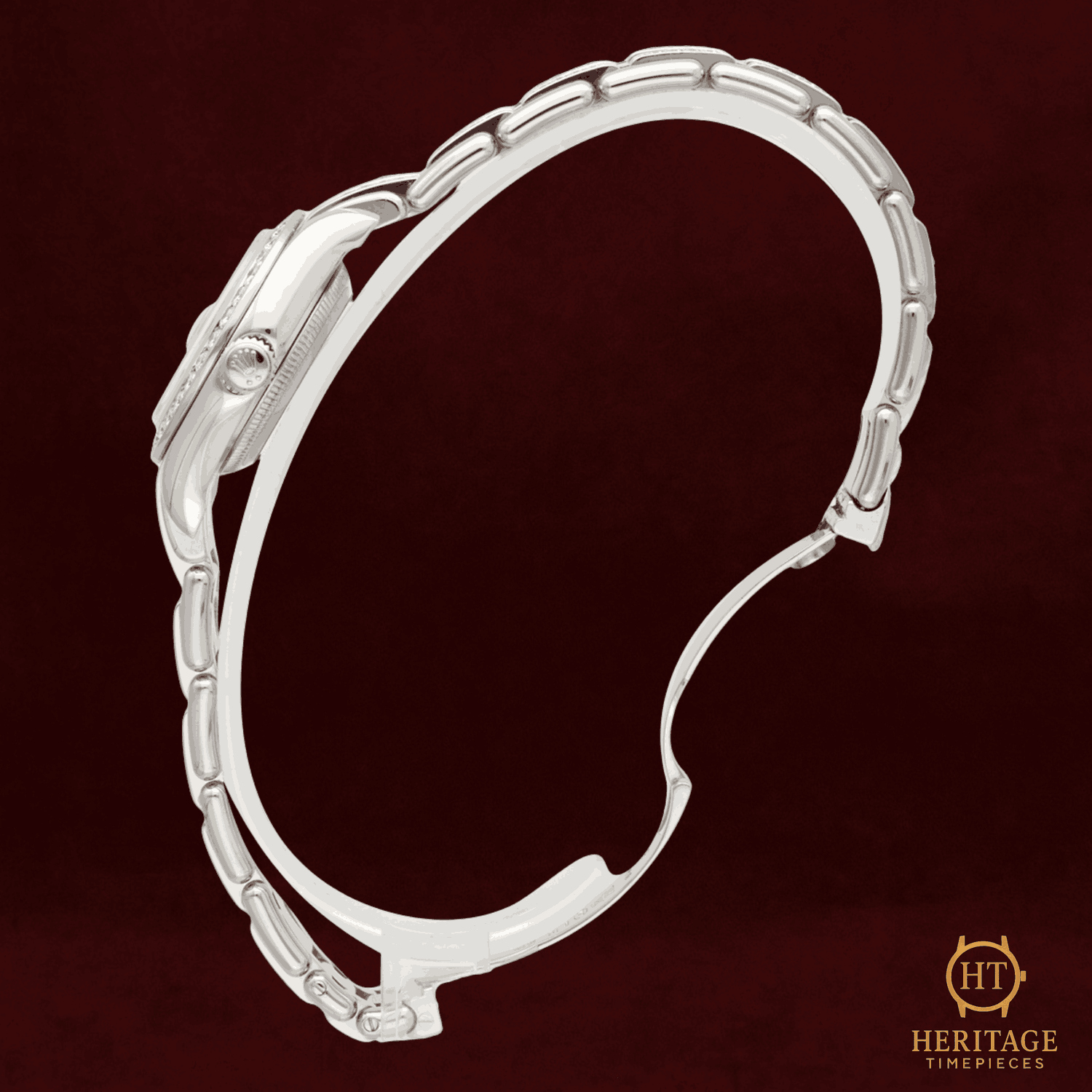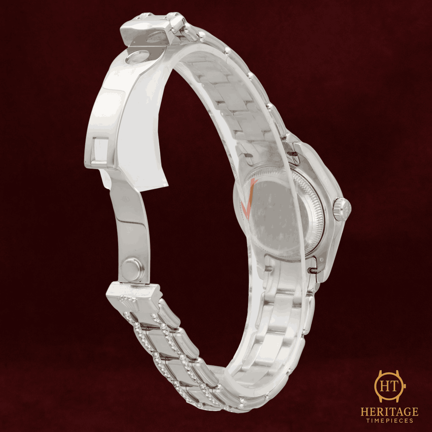 Heritage Narrative The Rolex Pearlmaster reference 80299 represents Rolex’s most elevated jewelry-oriented interpretation of the Datejust platform. Produced exclusively in precious metals and characterized by high-grade gem-setting, the Pearlmaster line combines traditional Rolex reliability with a distinctly luxurious aesthetic, positioned above standard Datejust configurations. This example from 2000 is presented in a factory diamond-set configuration, featuring diamonds across the dial, bezel, and bracelet. The grey dial is fitted with applied Arabic numeral hour markers and diamond detailing, creating a balanced mix of classic numerals and jewel-forward execution. The diamond-set bezel frames the dial with strong visual presence while maintaining Rolex’s precise finishing standards. Powering the watch is a Rolex self-winding Perpetual mechanical movement with date functionality, offering practical everyday usability within a high-jewelry format. The date display at 3 o’clock preserves the Datejust identity while complementing the overall symmetrical dial design. The 29 mm 18kt white gold case is paired with a matching Pearlmaster bracelet, also diamond-set, and secured with a concealed deployant clasp for a seamless and refined wrist profile. With its precious metal construction and factory gem-setting throughout, the 80299 is best suited for collectors seeking a rare Rolex reference where craftsmanship and jewelry execution are central to the watch’s identity. Presented pre-owned in excellent condition and accompanied by its original Rolex box, this Pearlmaster 80299 offers a highly exclusive vintage Rolex configuration with unmistakable presence. Technical Specifications Brand:Rolex Model:Pearlmaster 29 (Datejust Pearlmaster) Reference:80299 Year:2000 Movement:Rolex self-winding Perpetual mechanical movement Complications:Date Case:29 mm 18kt white gold Oyster case Bezel:Factory diamond-set 18kt white gold bezel Crystal:Scratch-resistant sapphire crystal Dial / Hands:Grey dialApplied Arabic numeral hour markersFactory diamond-set dial detailsHands Bracelet:18kt white gold Pearlmaster braceletFactory diamond-set bracelet Clasp:18kt white gold concealed deployant clasp Water Resistance:100 m / 330 ft (factory specification) Condition & Inclusions Overall Condition:Pre-owned — excellent condition Service Status:Movement tested and functioning correctly Set:Includes original boxNo warranty Shipping & Logistics The watch is stored securely and shipped fully insured within 1–3 business days. Worldwide shipping is available. Any applicable import duties or taxes are the responsibility of the buyer. Shipping & Returns Complimentary insured worldwide shipping and a 14-day return window. Each timepiece is authenticated, time-tested, and professionally prepared prior to dispatch. Secure packaging, tracking, and full insurance are included with every shipment.