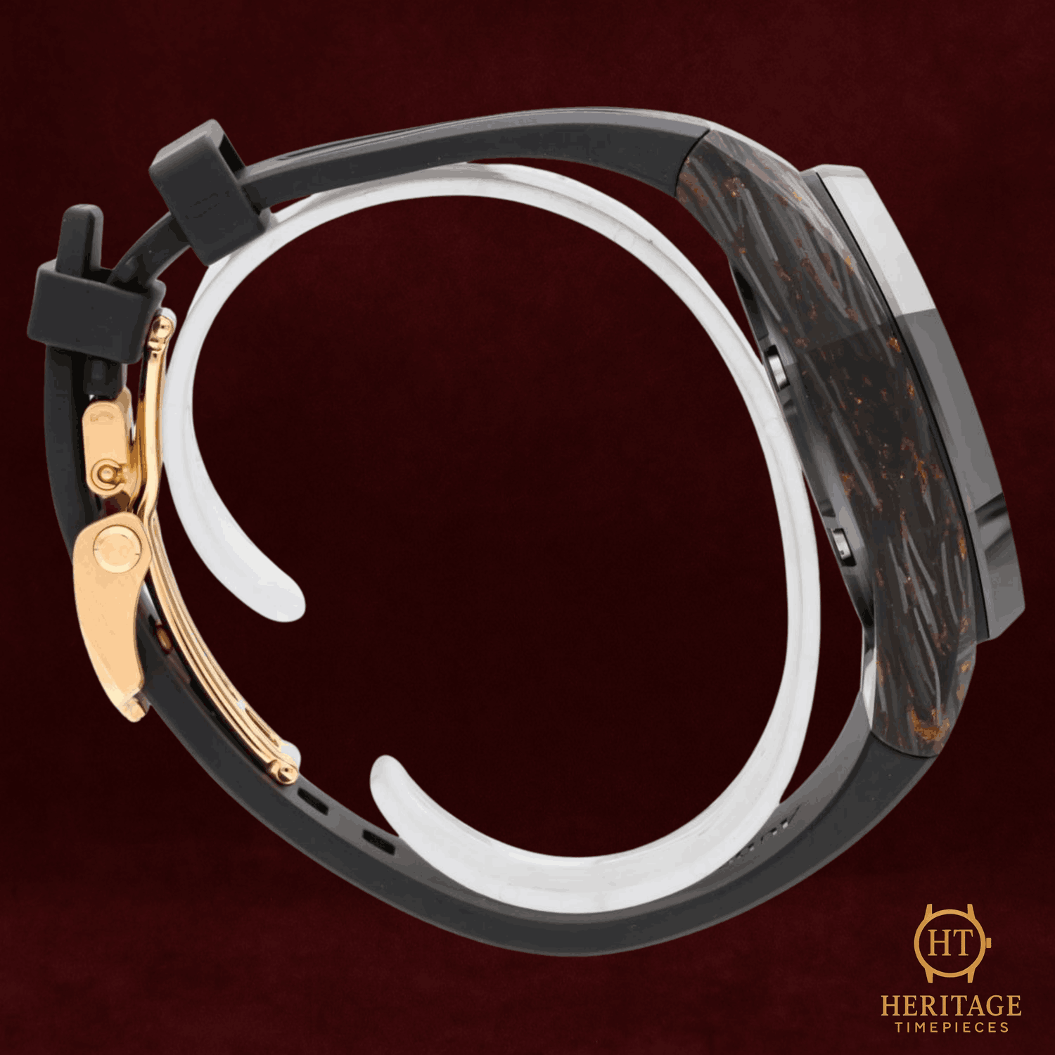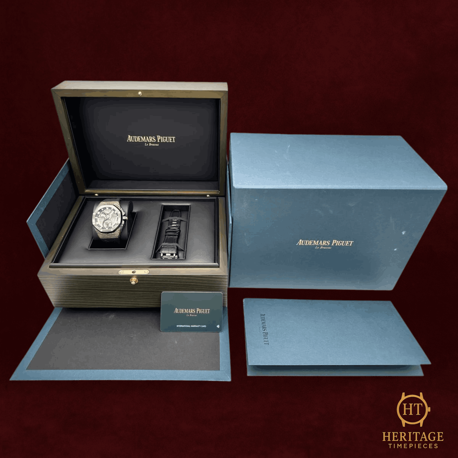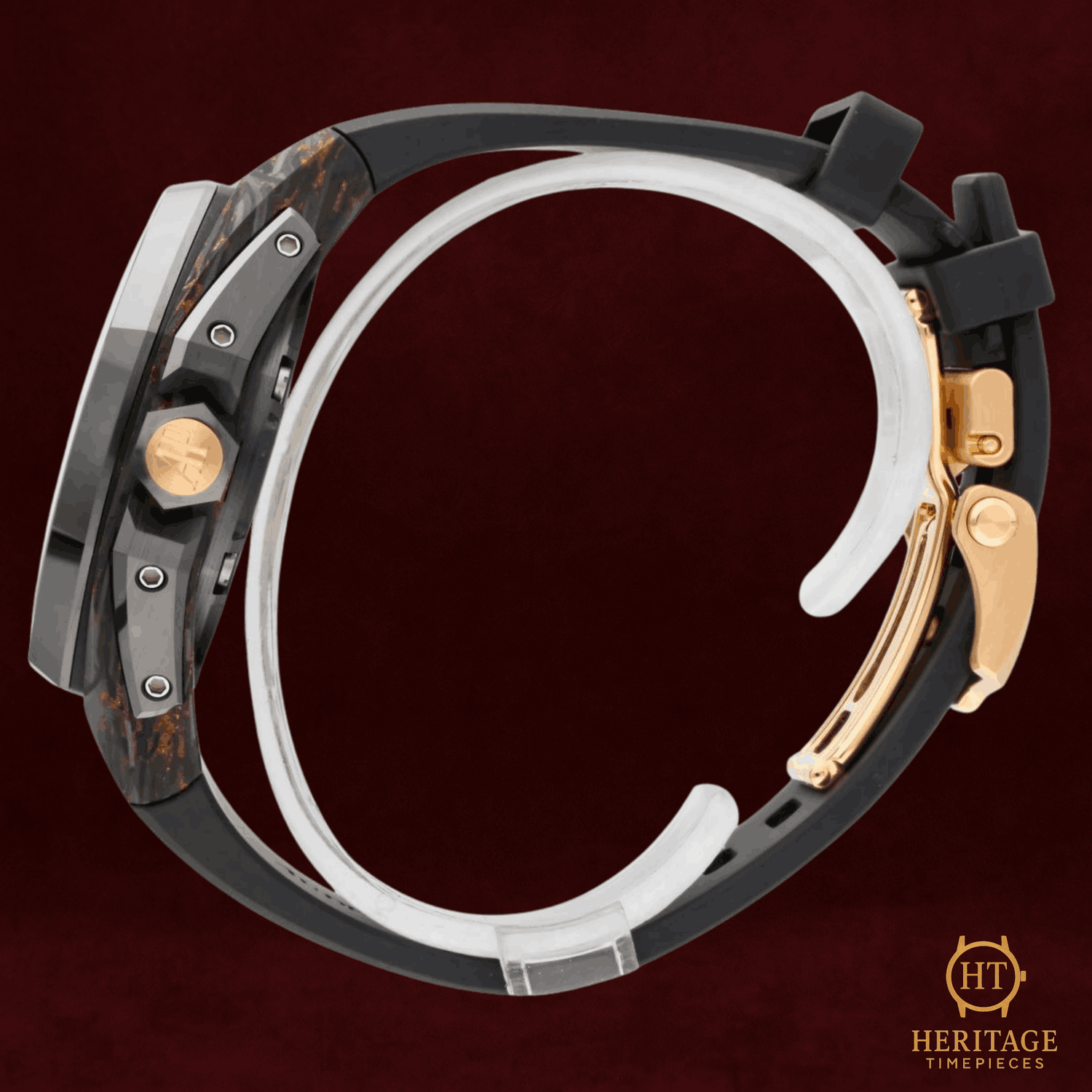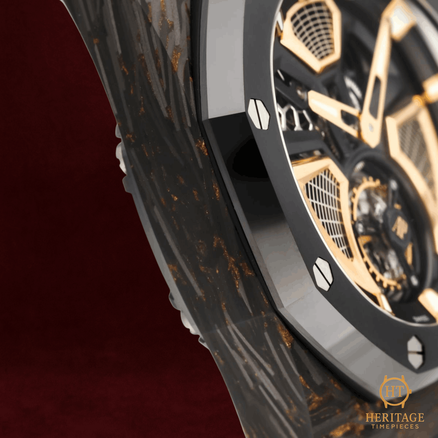 Heritage Narrative The Audemars Piguet Royal Oak Concept Flying Tourbillon is an avant-garde timepiece that showcases the brand’s most progressive approach to materials, mechanics, and design. Created as a special edition for the Middle East market, this model reflects close collaboration between Audemars Piguet and its most dedicated collectors, resulting in a bold and technically sophisticated expression of the Royal Oak Concept line. The 42 mm case is crafted from Chroma Forged Technology (CFT) carbon, a high-tech composite material developed by Audemars Piguet. The forged carbon construction reveals unique bronze-toned patterns throughout the case, ensuring that no two examples are exactly alike. A black ceramic bezel and crown guards provide contrast while reinforcing durability and lightness. The openworked dial offers an unobstructed view of the flying tourbillon and the automatic mechanical movement beneath. Pink gold accents on the inner bezel, hands, and applied elements enhance depth and legibility, while the skeletonized architecture highlights the technical complexity of the watch. A sapphire crystal and transparent caseback further showcase the movement’s refined finishing. With a power reserve of approximately 72 hours and water resistance up to 50 meters, the Royal Oak Concept Flying Tourbillon balances cutting-edge horology with real-world usability. Offered as a full set and presented in pre-owned condition, this timepiece represents a highly collectible example of Audemars Piguet’s modern haute horlogerie. Technical Specifications Brand:Audemars Piguet Model:Royal Oak Concept Flying Tourbillon Reference:26638F.OO.D002CA.01 Year:2025 Movement:Automatic mechanical movement Functions:Flying tourbillonChronograph Power Reserve:Approximately 72 hours Case:42 mm CFT carbon case Bezel:Black ceramic bezel Dial:Transparent openworked dialNo numerals Crystal:Sapphire crystalSapphire caseback Bracelet / Strap:Black rubber strap Clasp:Pink gold folding clasp Water Resistance:50 m Condition & Inclusions Overall Condition:Pre-owned Set:Full set — includes box and papers Warranty:Manufacturer warranty included Shipping & Logistics The watch is stored securely and shipped fully insured within 1–3 business days. Worldwide shipping is available. Any applicable import duties or taxes are the responsibility of the buyer. Shipping & Returns Complimentary insured worldwide shipping and a 14-day return window. Each timepiece is authenticated, time-tested, and professionally prepared prior to dispatch. Secure packaging, tracking, and full insurance are included with every shipment.