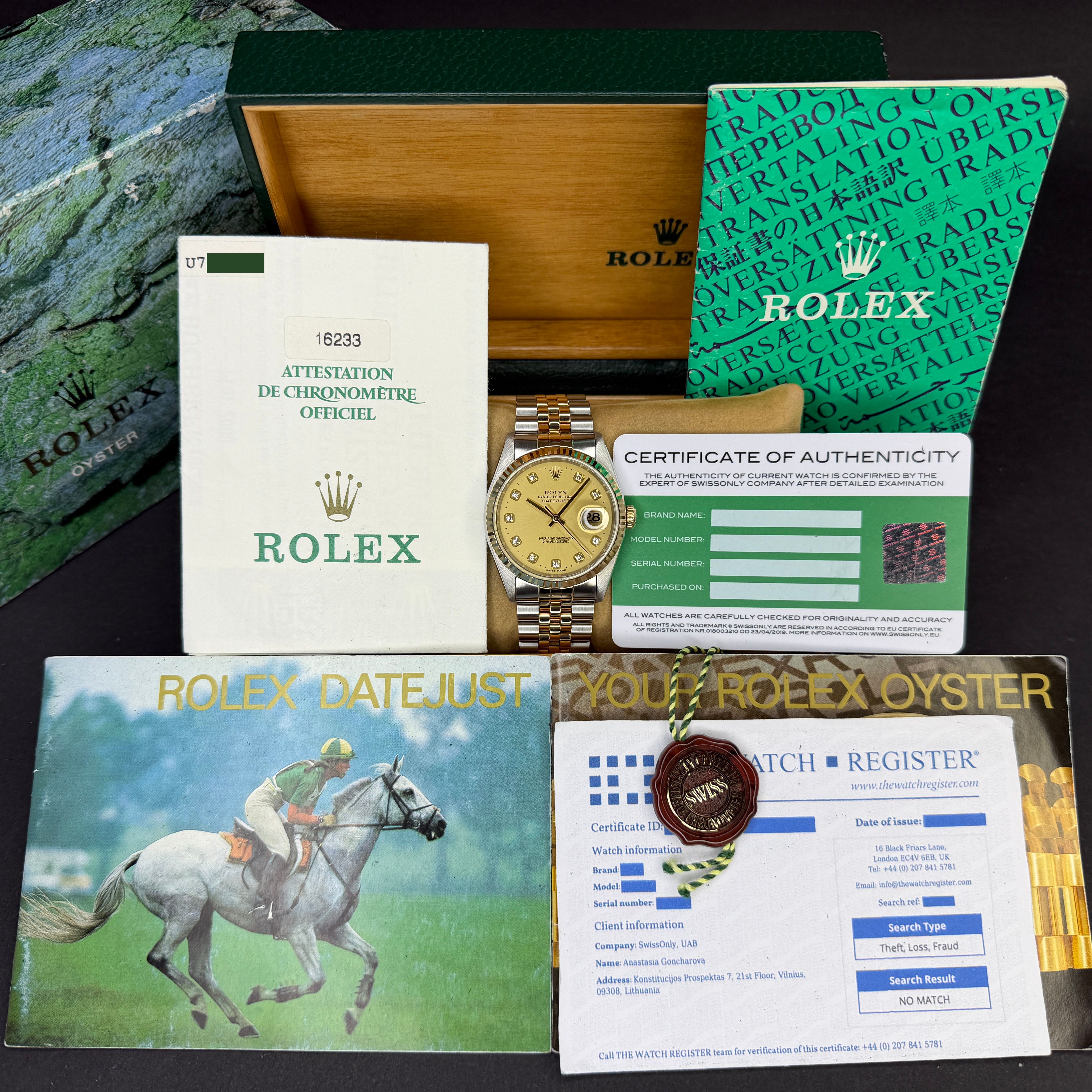 Rolex Datejust 36 Rolex Datejust, 16233, 36mm, 1998, Two-Tone, Champagne Big Diamond dial, Fullset, 1y warranty