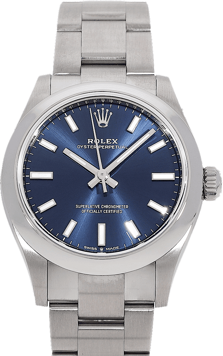 Rolex Oyster Perpetual, Reference: M277200-0003, Gender: Female, Size: 31mm, Dial color: Blue, Strap material: Stainless Steel, Movement: Automatic, Year: 2021, Condition: Previously worn, minor to no signs of usage. The movement is flawless and the case has been cleaned. watch tested ensure full functionality. An inspection by our certified watchmakers guarantees its authenticity., Documents: Chronext Certificate