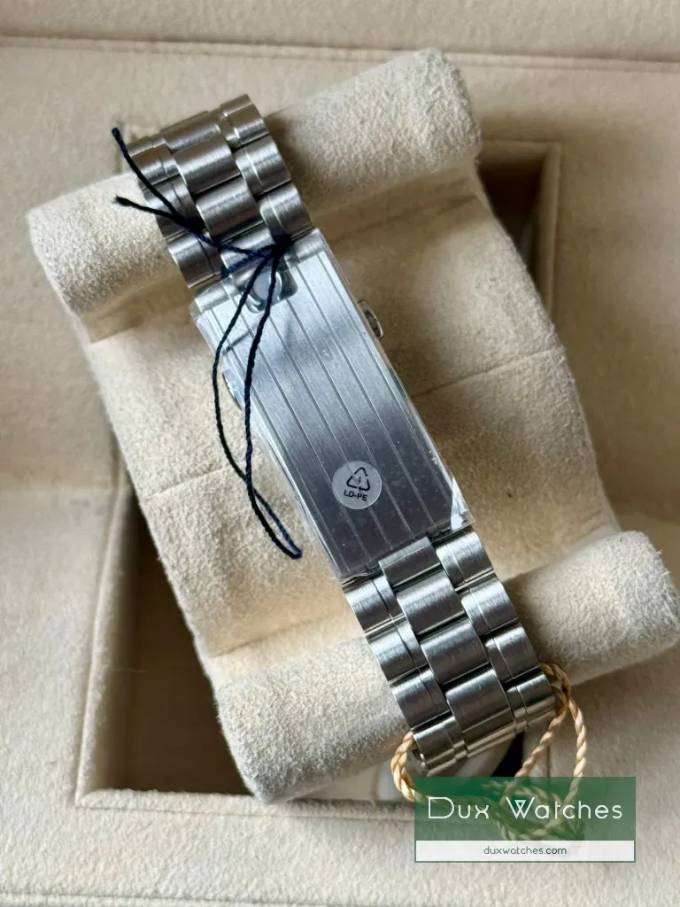 La montre n’a jamais été portée et est en état neuf. Elle peut provenir directement d’un revendeur agréé ou de la marque elle-même, ou avoir été échangée récemment sans avoir été portée.