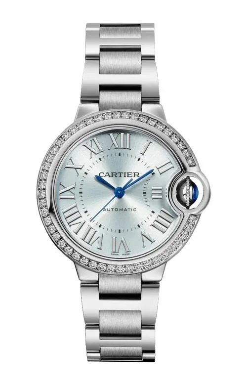 Cartier Ballon Bleu De Cartier 33 mm, automatique, acier, diamants W4BB0028