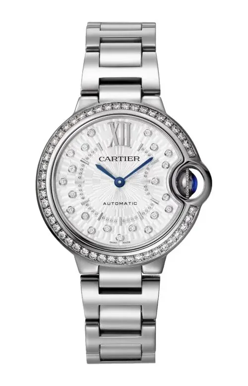 Cartier Ballon Bleu De Cartier 33 Mm, Automatico, Acciaio, Diamanti W4BB0035