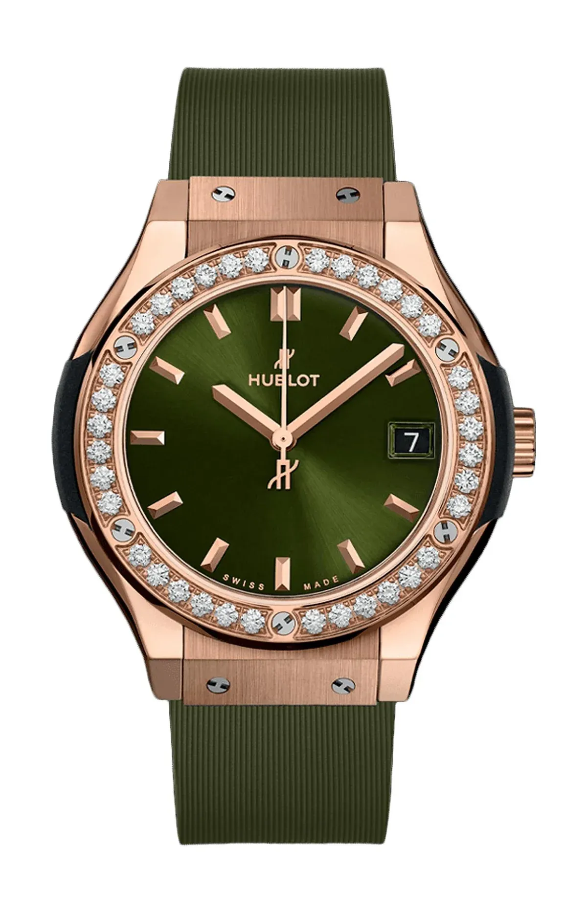 Hublot Classic Fusion King Gold Green Diamonds 33 Mm 581.OX.8980.RX.1104