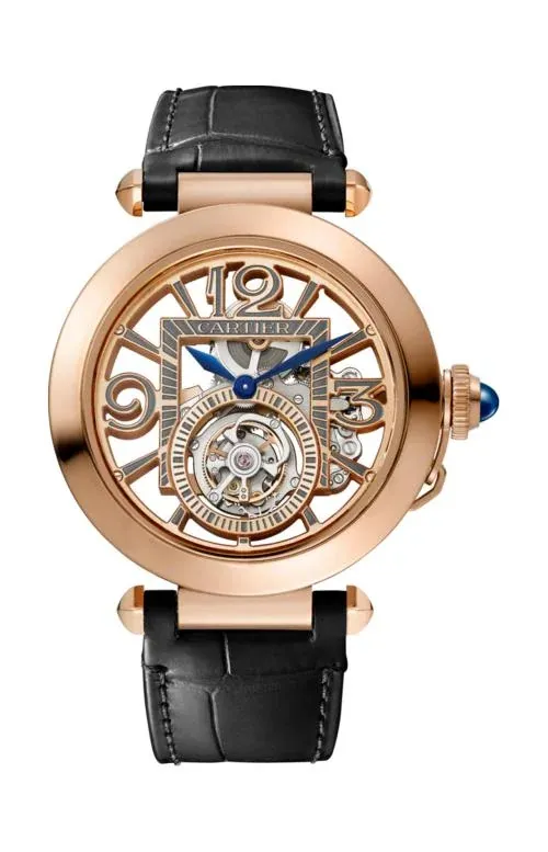 Cartier Pasha De Cartier 41 mm, Manuel, Or Rose, Cadran Squelette, Tourbillon, 2 Bracelets WHPA0006