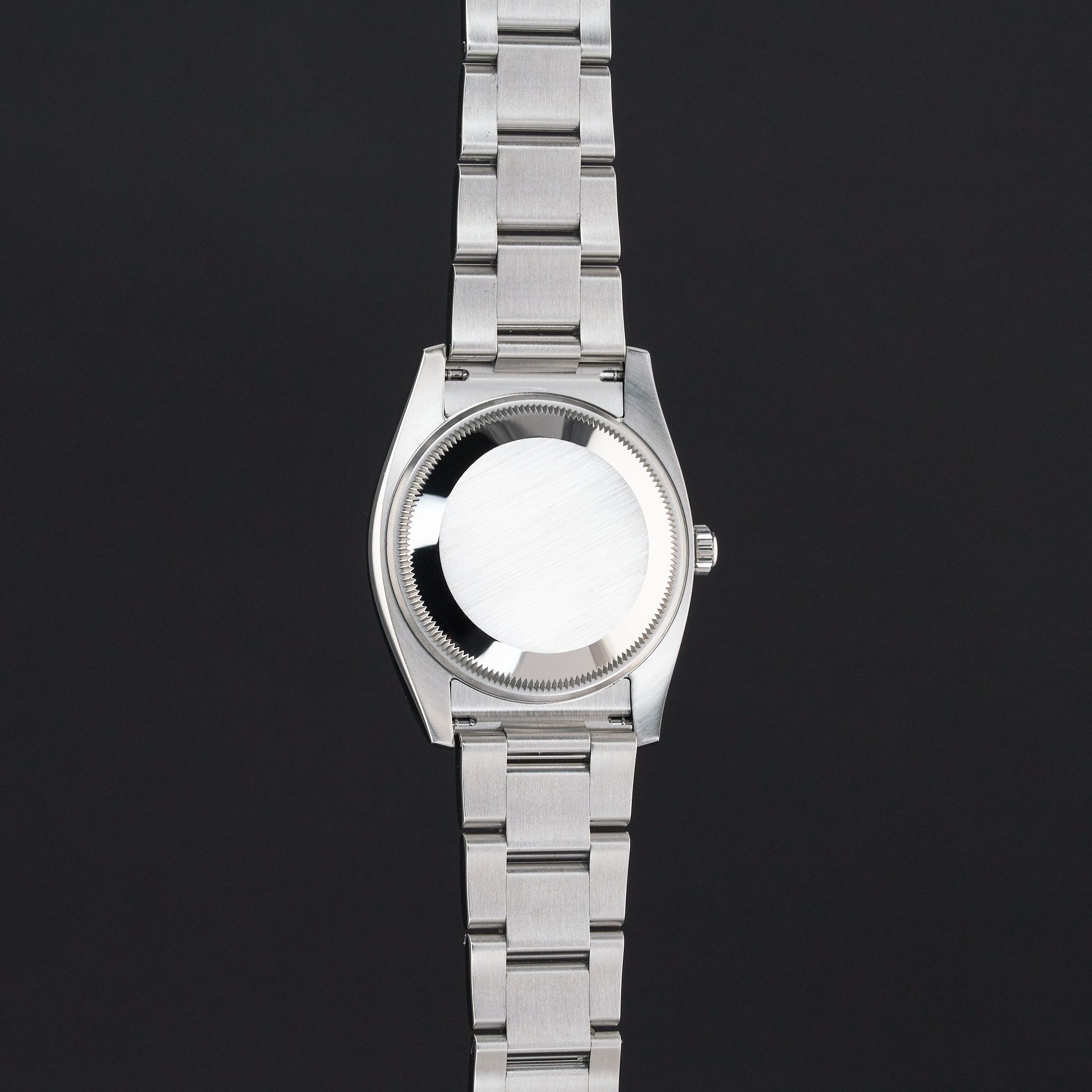 This Rolex Oyster Perpetual Date 115234 features a Silver Arabic diamond dial and is crafted from stainless steel, with a production year of 2020.Case No: L565XXXX