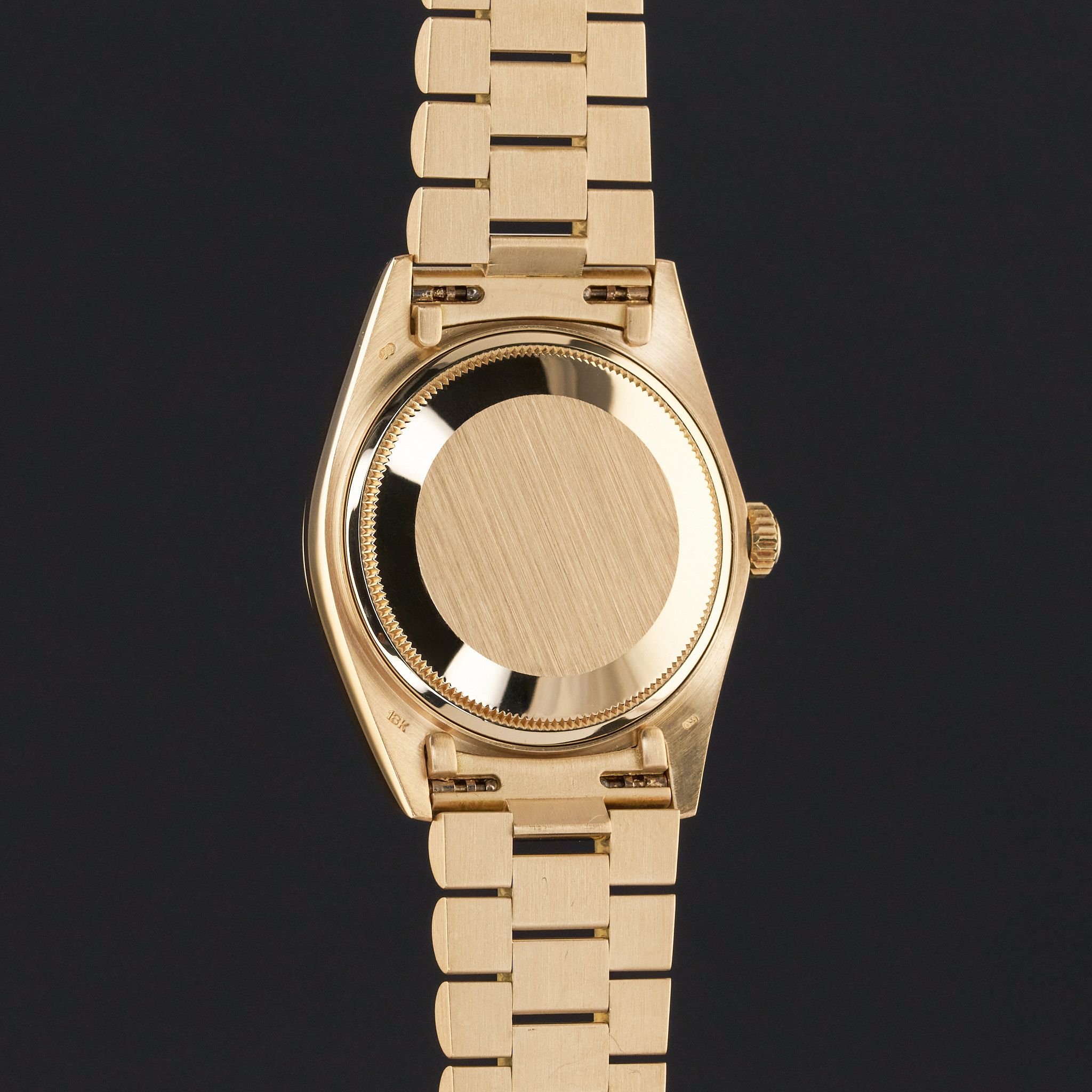This Rolex Day-Date 18038 features a Green vignette small diamond dial and is crafted from 18K yellow gold, with a production year of 1978.Case No: 572XXXX