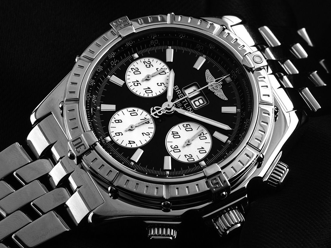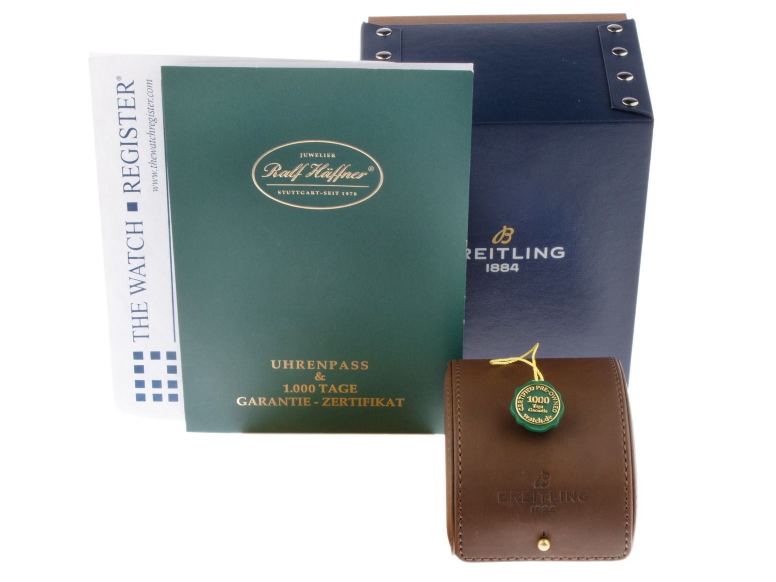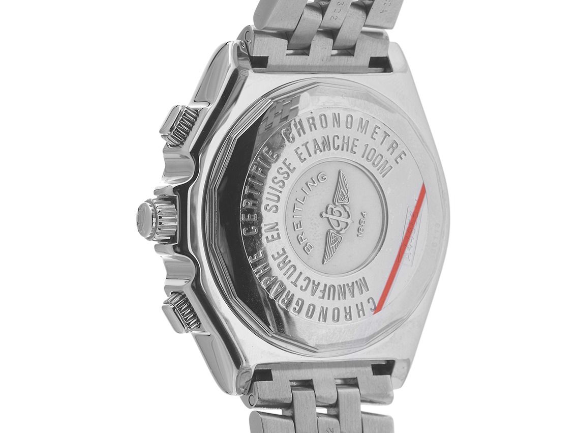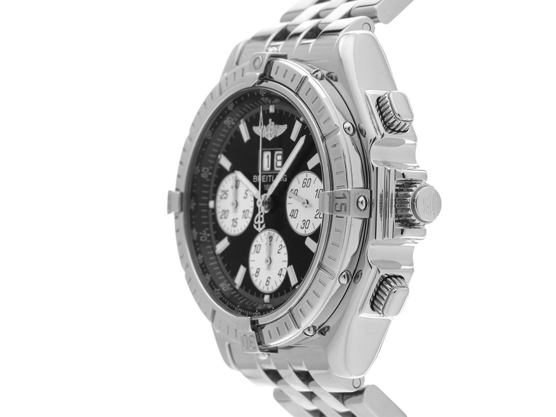Boîtier en acier inoxydable poli, diamètre du boîtier sans couronne 44mm, hauteur du boîtier 16,9mm. Lunette en acier inoxydable poli avec graduation de 60 minutes, unidirectionnelle. Bracelet en acier inoxydable poli, fermoir déployant de sécurité en acier inoxydable avec logo du fabricant. Cadran noir avec index en acier inoxydable appliqués et aiguilles en acier inoxydable, sous-cadrans argentés et guillochés. Mouvement automatique, chronographe, calibre Breitling 2892 A2. Affichage des heures et des minutes par aiguilles centrales, petite seconde avec stop-seconde pour un réglage précis de l'heure à 3 heures, affichage de la grande date avec réglage rapide à 12 heures. Verre saphir résistant aux rayures et bombé. Couronne vissée avec protection latérale et logo du fabricant. Fond en acier vissé et gravé avec relief Breitling. Poids de la montre y compris le bracelet 211g, longueur du bracelet y compris le boîtier 190mm. Numéro de référence : A44355, numéro de boîtier : 293XXX, année de fabrication : 2006, ID : P287336000426H-5200, numéro d'article : 10000085582. Avec contrôle de marche et révision extérieure complète d'avril 2026. Boîte Breitling d'origine avec carton d'emballage et extrait du Watch Register d'avril 2026, certificat The Watch Register / sans inscription (base de données internationale pour montres perdues ou volées). Super affaire, de première main, presque jamais portée. Très bon état. Délai de livraison immédiat.