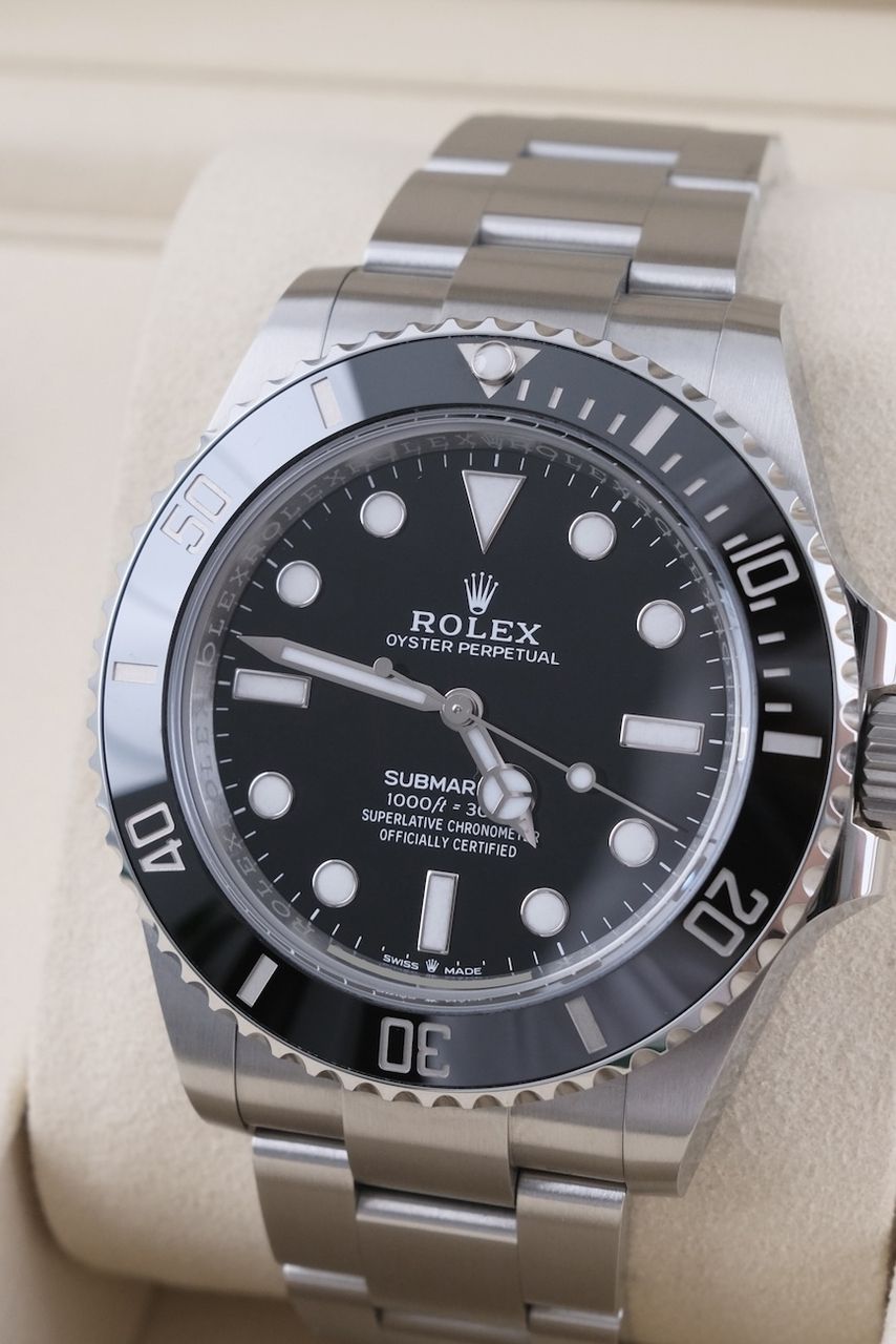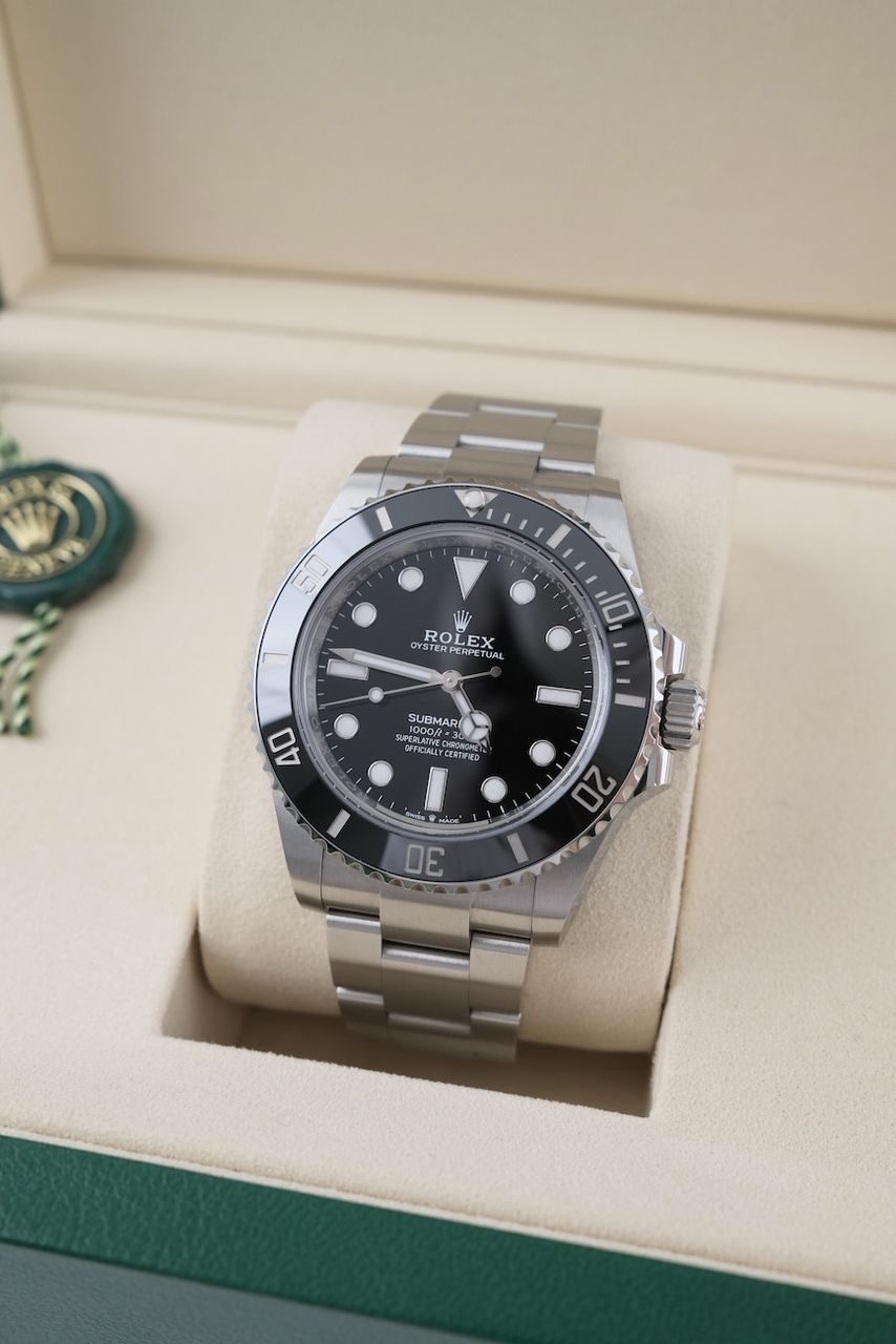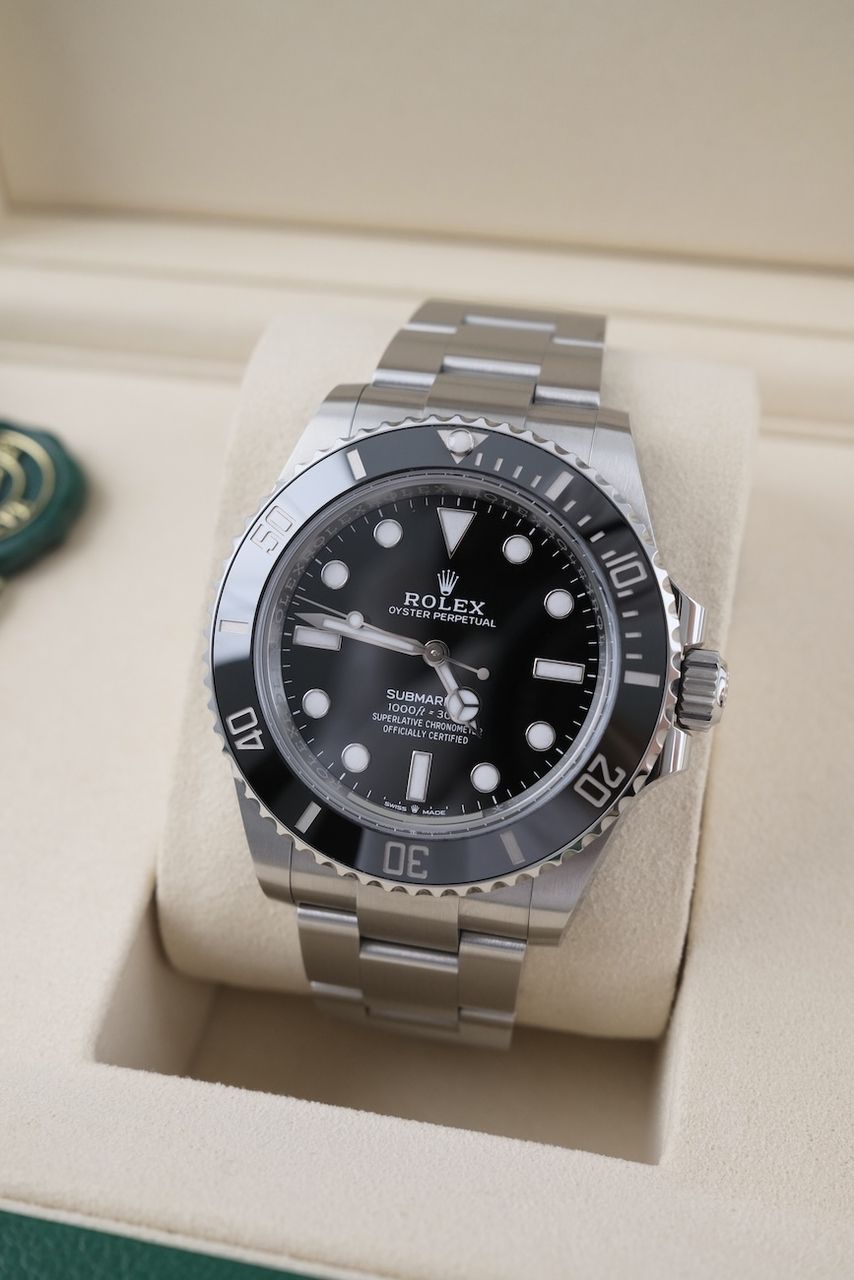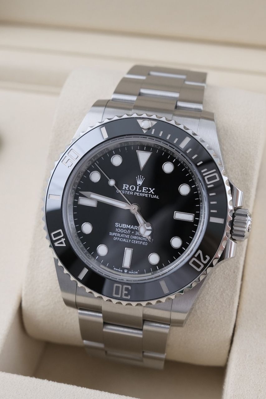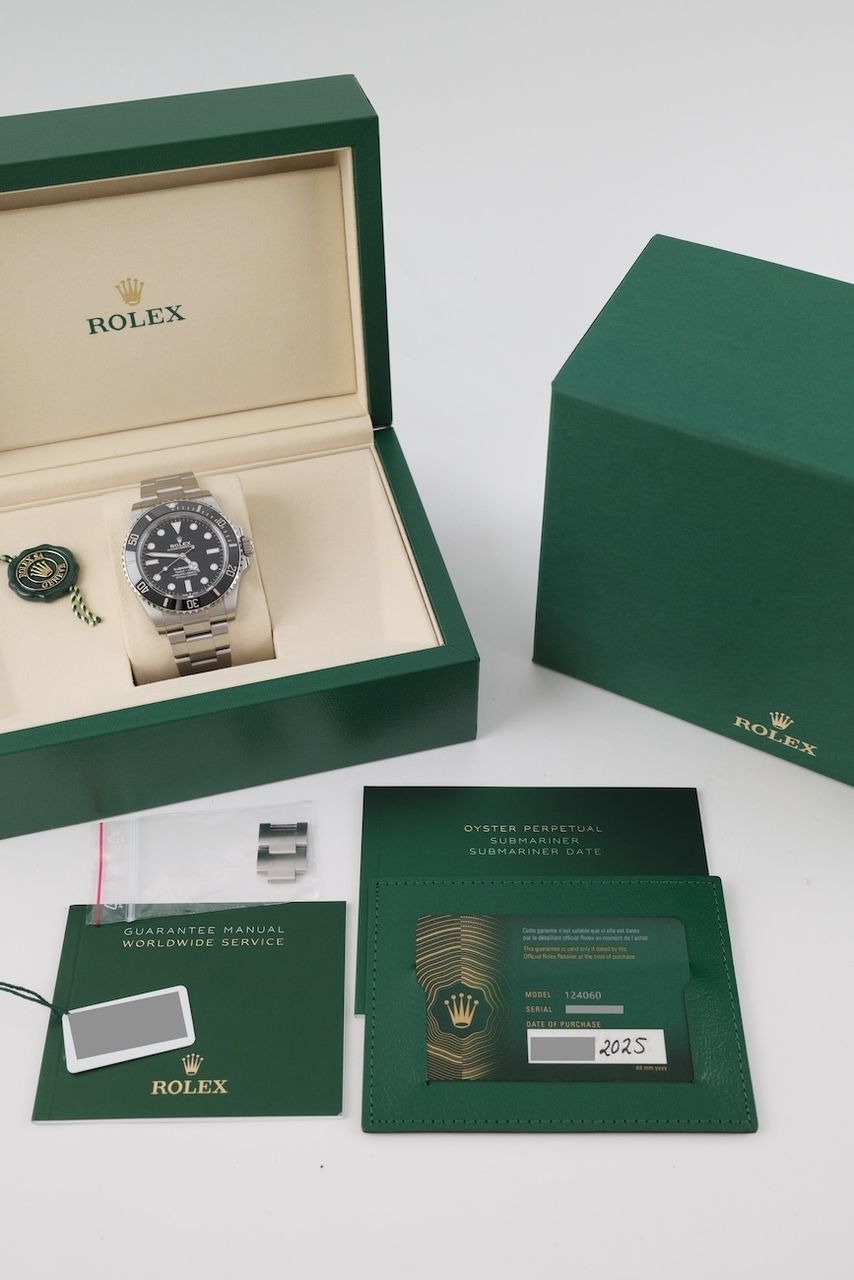 **Watch Description** Ready for your new dream watch? Perhaps this beautiful Rolex Submariner No Date made of Steel will soon be on your wrist. Whether vintage or modern - with over 200 watches in stock, we always have your new luxury watch available for you immediately - whether you are a first-time buyer or your watch collection needs a new addition. **FACT CHECK - Everything you need to know:** - Movement checked for running behavior and no pending service. - If you like the watch in the pictures, you'll love it on your wrist. Our macro shots are unedited and show more than your eye can see. **SPECIFICATIONS AND SCOPE OF DELIVERY - This is how your new watch will arrive:** - Case diameter: 41mm - Wrist circumference: up to 20cm - Year of manufacture: 2025 - Case material: Steel - Strap material: Steel - Bracelet color: Steel - Dial color: Black - Reference number: 124060 - Movement: Automatic - Original box included - Original papers - 12 months warranty - The complete scope of delivery can be seen in the pictures **QUALITY PROMISE** Every watch is checked for authenticity and function by our master watchmaker. So you get the all-round carefree package and an additional 12-month warranty! **INSPECTION AND SHIPPING** - Worldwide insured priority transport with tracking number. We deliver to watch lovers and collectors worldwide. Whether Asia, America, Australia or any other part of the world - the watch pictured can be on your wrist in just a few days. Within the EU even next-day. Alternatively, we would be happy to meet you at one of our 2 locations in southern Germany by prior arrangement: - Bavaria: THE BANK 94436 - Baden-Württemberg: THE LOFT 89073 - We also offer you a trade-in of your watch(es) to make the deal possible. - The purchase price is taxed according to §25 UStG. VAT is therefore not shown. - Prices include all taxes and fees for deliveries within the EU. There are no additional costs. **WatchId:** GID-5698-0ae3