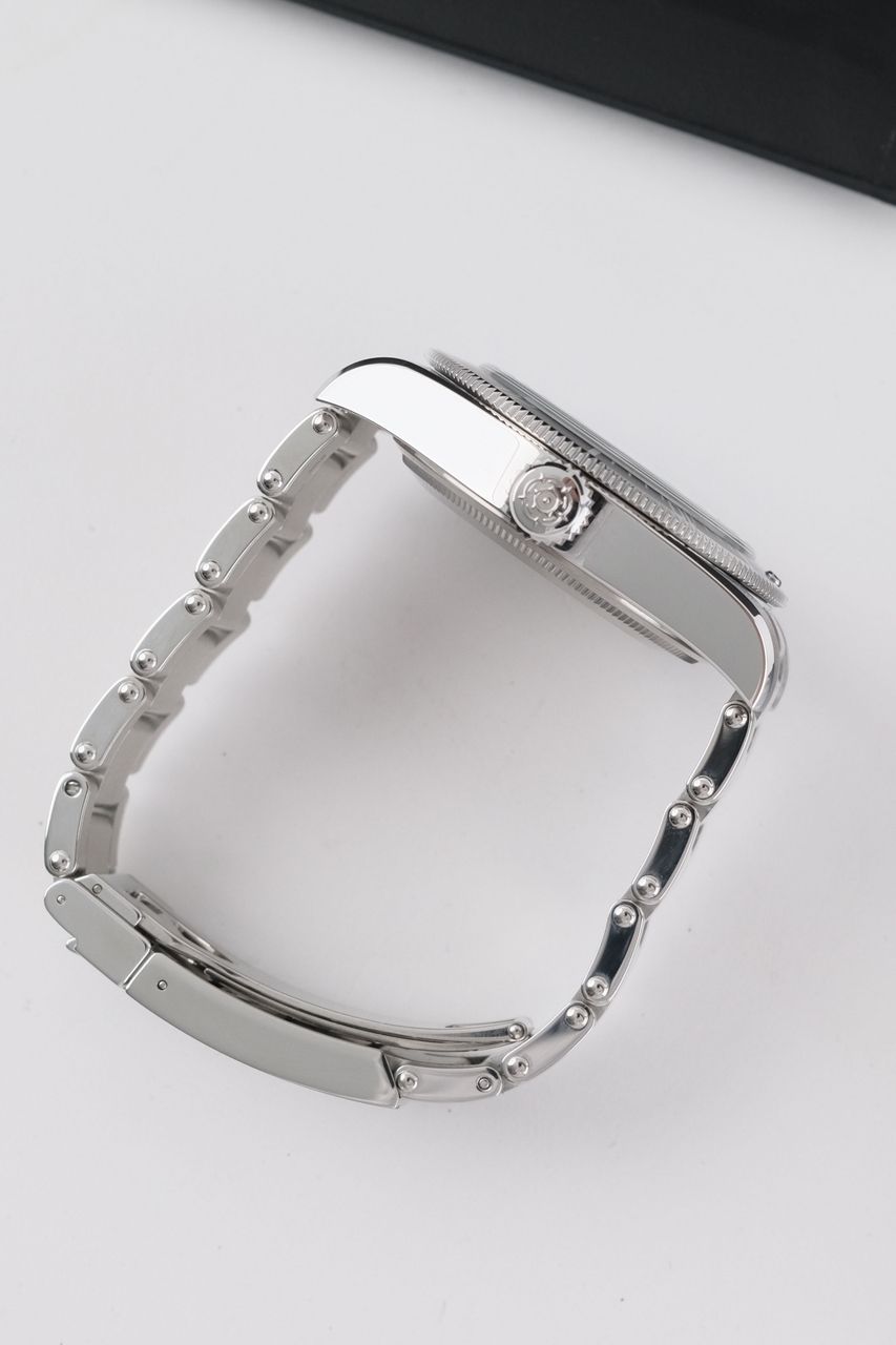 - Légères traces d’usure telles que de fines rayures ou micro-rayures. Le boîtier, la lunette et le bracelet conservent leurs arêtes nettes et leur forme générale. Peut avoir été poli professionnellement sans altérer les contours d’origine. Entièrement fonctionnelle mécaniquement.