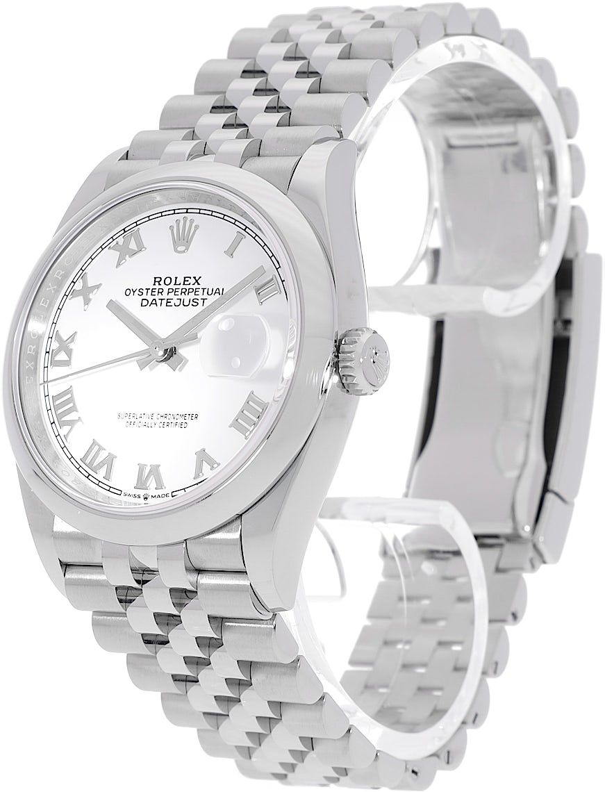Rolex Datejust, Reference: 126234, Gender: Unisex, Size: 36mm, Dial color: White, Strap material: Stainless Steel, Movement: Automatic, Year: 2022, Condition: Previously worn, minor to no signs of usage. The movement is flawless and the case has been cleaned. watch tested ensure full functionality. An inspection by our certified watchmakers guarantees its authenticity., Documents: Original papers, CHRONEXT Certificate