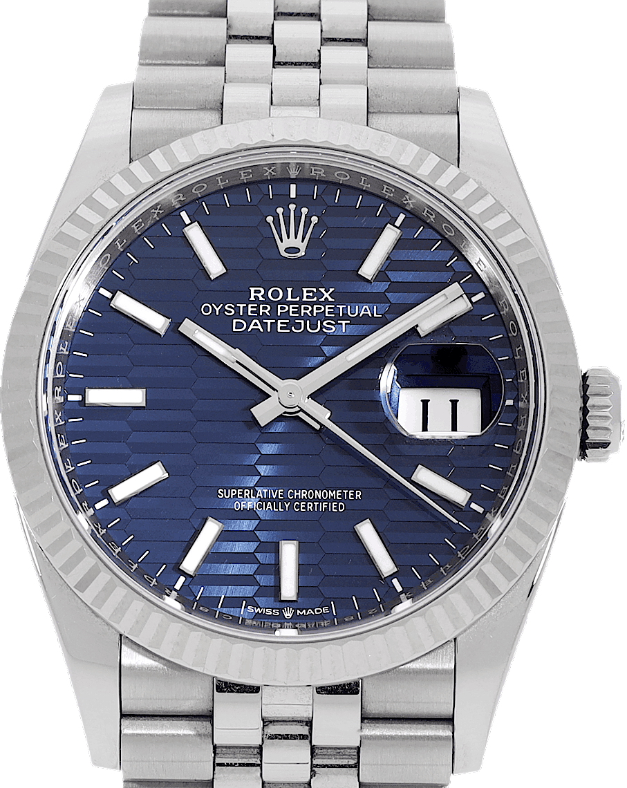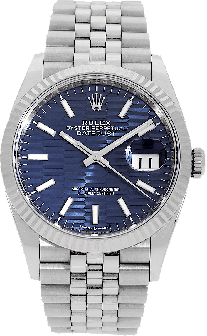 Rolex Datejust 36, Reference: 126234, Gender: Unisex, Size: 36mm, Dial color: Blue, Strap material: Stainless Steel, Movement: Automatic, Year: 2024, Condition: Previously worn, minor to no signs of usage. The movement is flawless and the case has been cleaned. watch tested ensure full functionality. An inspection by our certified watchmakers guarantees its authenticity., Documents: Original papers, CHRONEXT Certificate