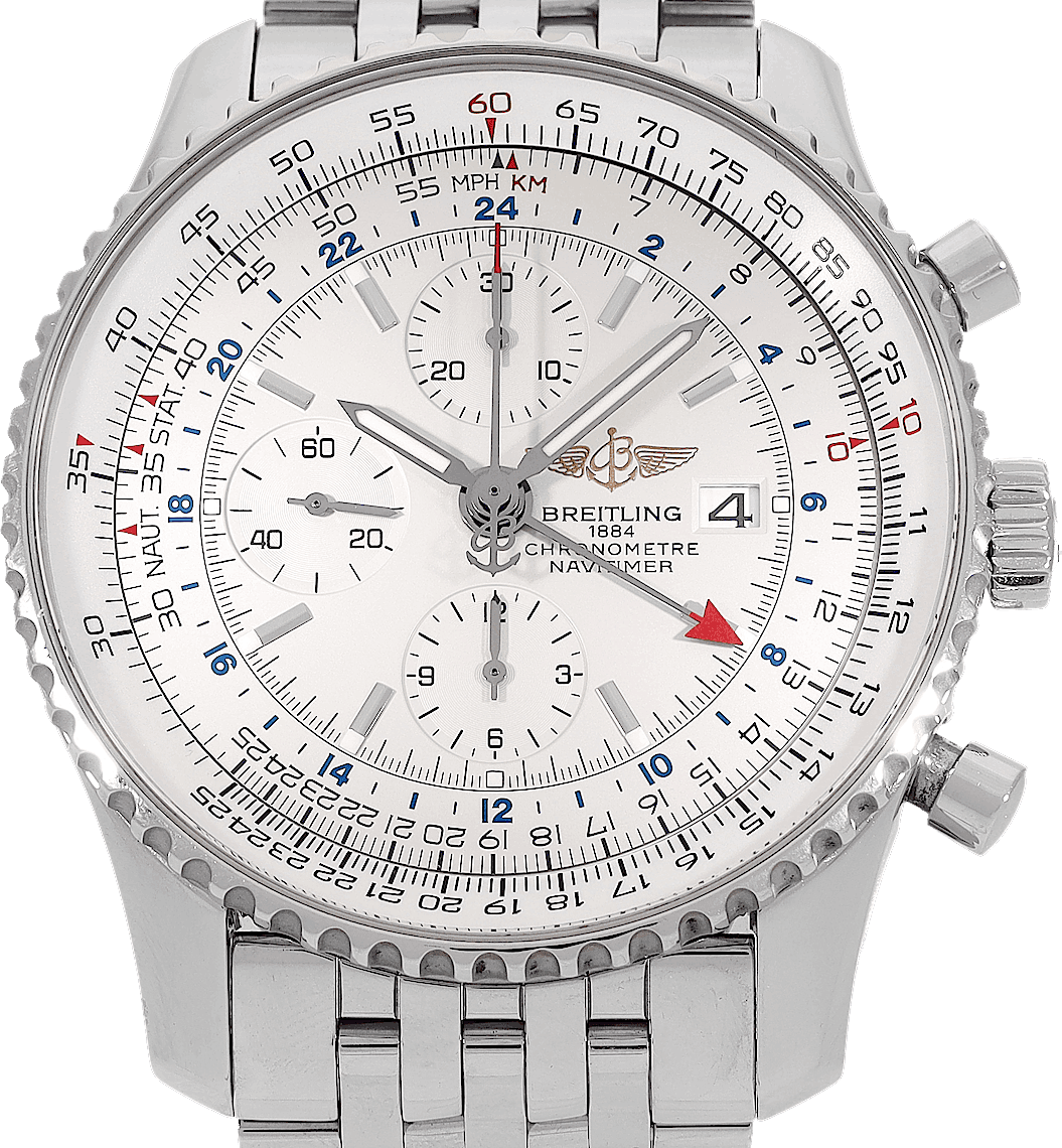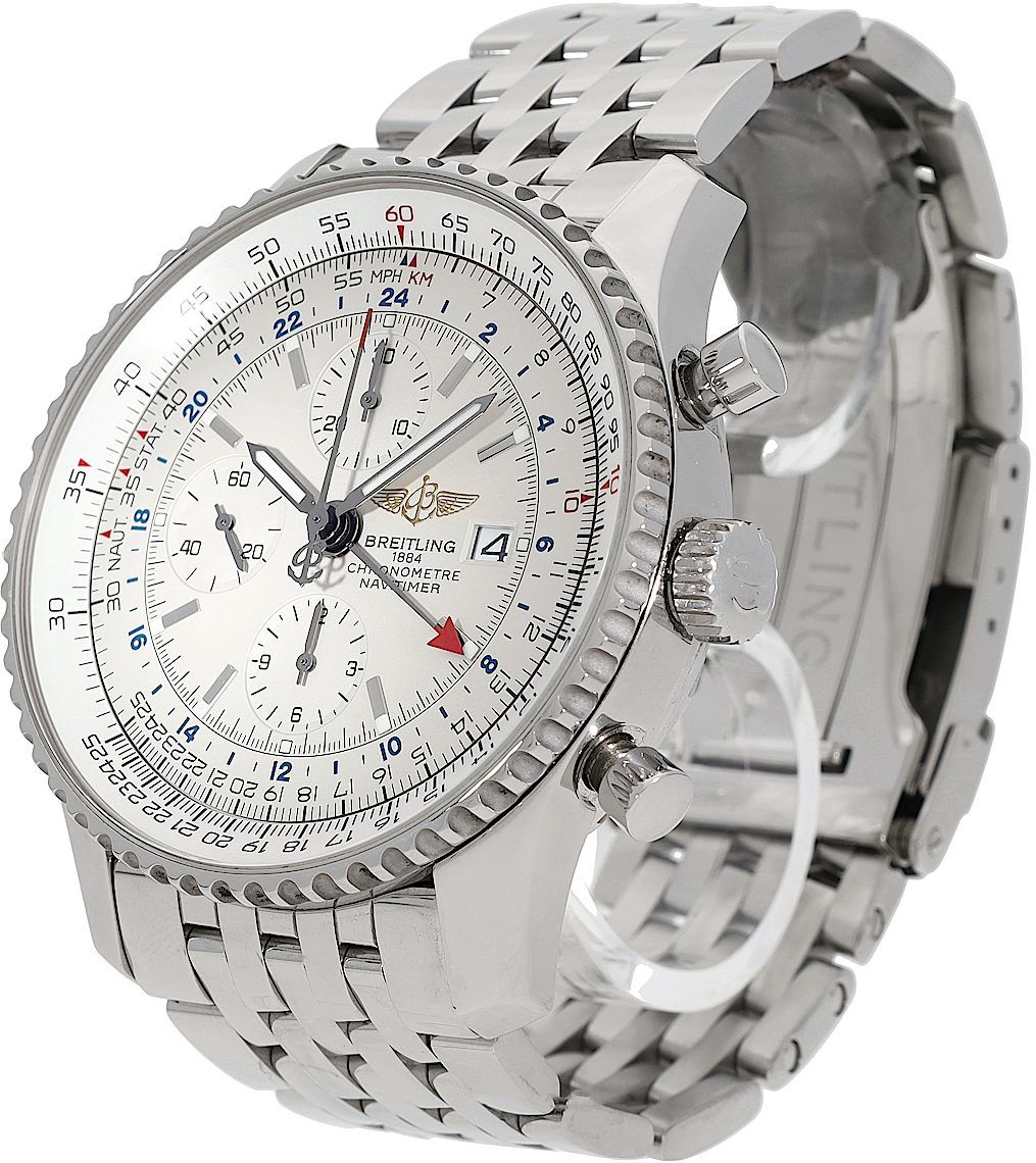 Breitling Navitimer, Reference: A2432212.G571, Gender: Male, Size: 46mm, Dial color: Silver, Strap material: Stainless Steel, Movement: Automatic, Year: 2008, Condition: Pre-owned watch in original condition. Has been inspected, regulated and authenticated by certified CHRONEXT watchmakers., Documents: Original papers, Certificate