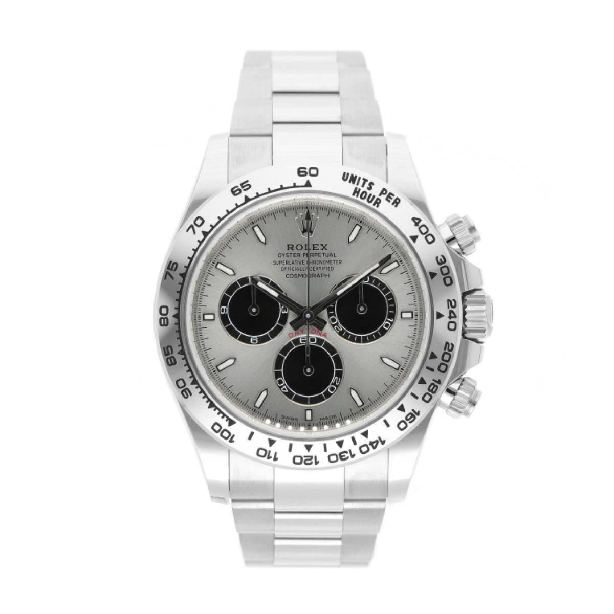 Rolex Daytona from 2025 with a 40mm white gold case and folding clasp. This unisex Rolex watch is in unworn condition.Unworn