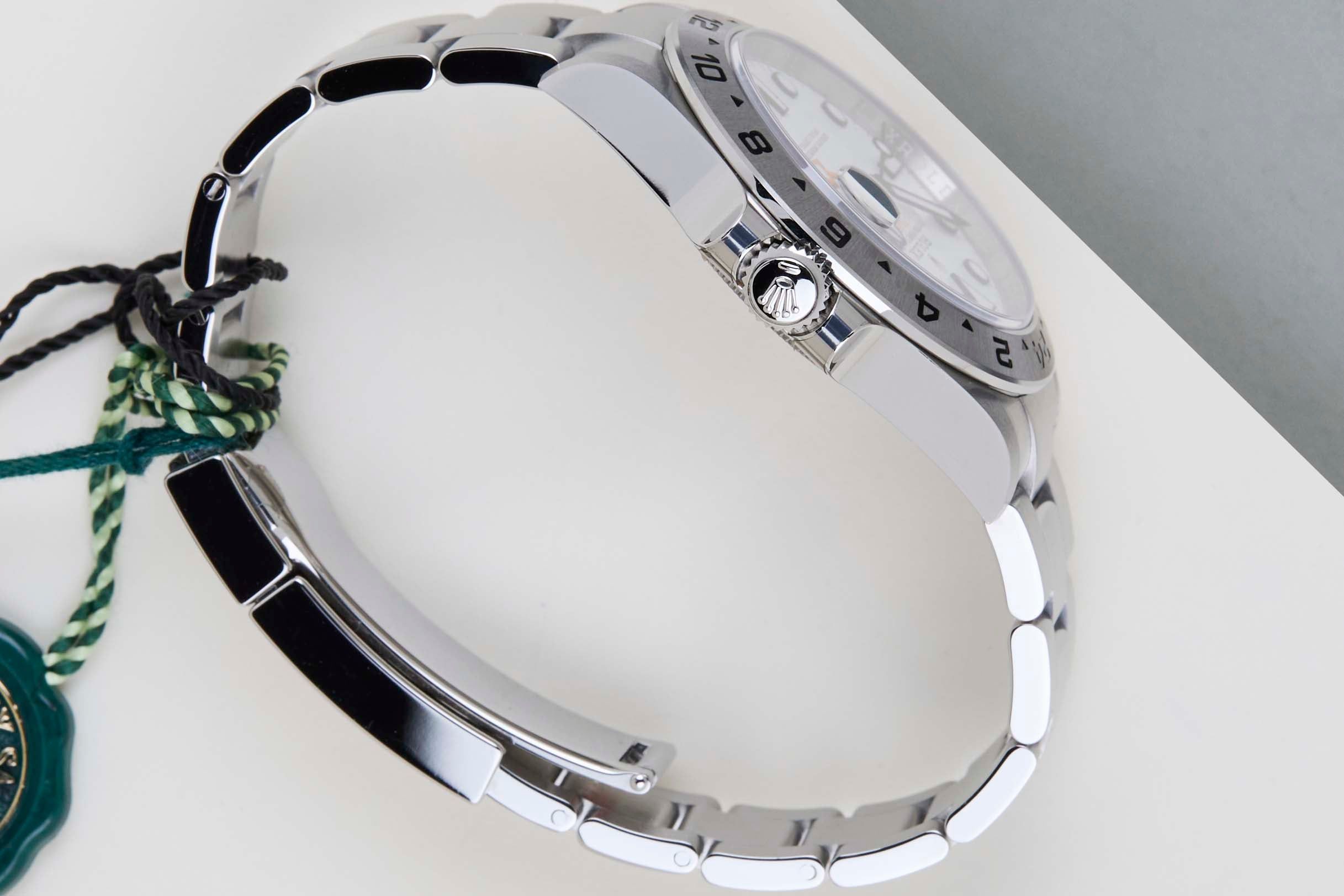 Full Set | Including White Rolex Tag | International Rolex Warranty Until October 2030The Rolex Explorer II is a popular watch model that was first introduced in 1971 as an extension of the original Rolex Explorer. The Explorer II was designed with professional cave and polar explorers in mind, and features a distinctive 24-hour hand and fixed bezel, which allows the wearer to distinguish between day and night hours.This Rolex Explorer II 'White Dial' was sold for the first time in October 2025.The explorer is fitted with an Oyster bracelet, which is equipped with the Easylink. This extension, allows the wearer to either extend or shorten the bracelet by 5 millimeters, improving the wearability and usability of the watch.This Rolex Explorer II is in Mint condition and comes with the original Rolex Warranty Card and box. Furthermore, the watch still has Worldwide Rolex Warranty until October 2030.