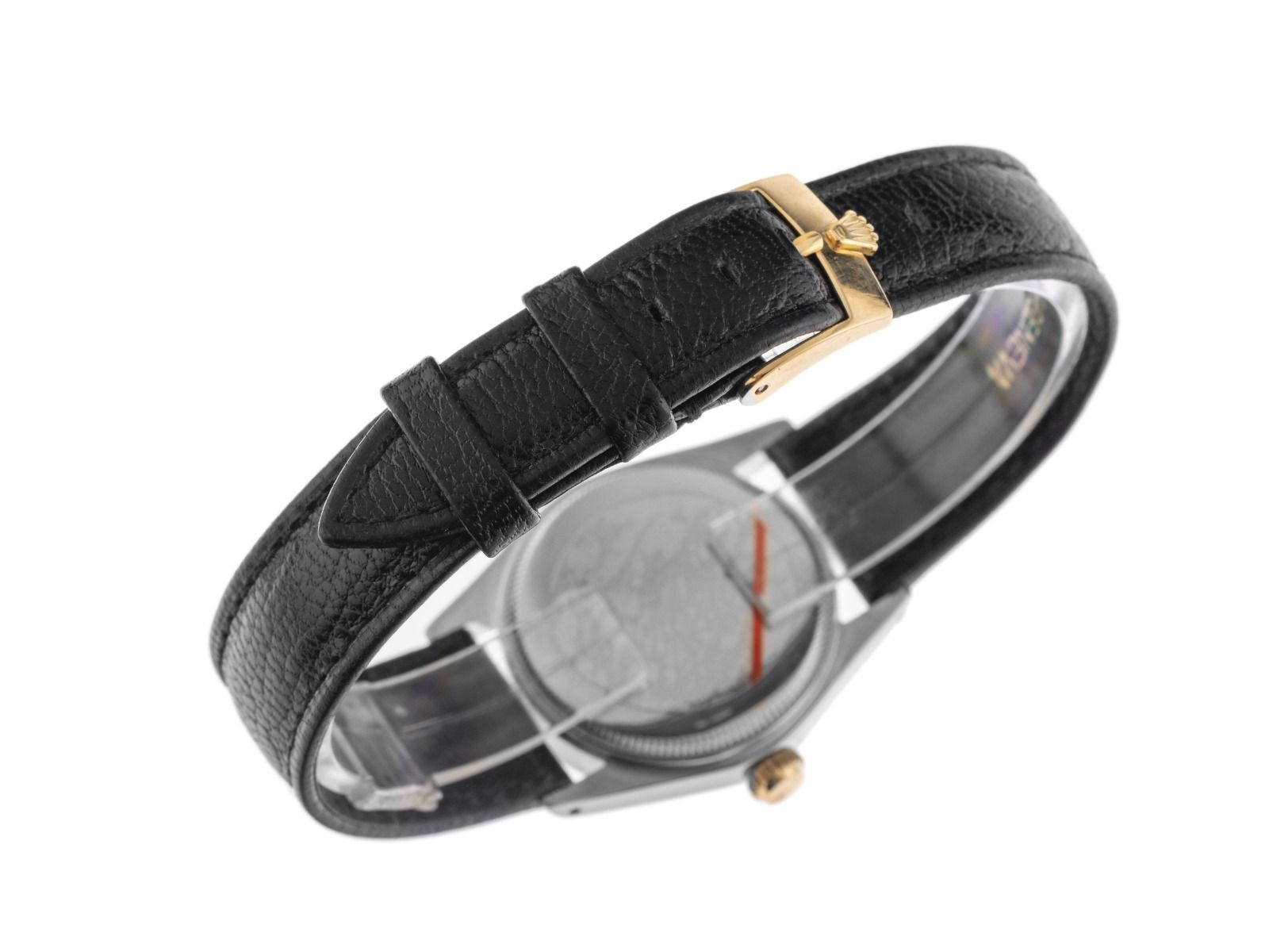 Rolex Oyster Perpetual 14kt Gelbgold Automatik Armband Krokoleder Gehäuse Edelstahl poliert und satiniert, Gehäusedurchmesser ohne Krone 30mm, Gehäusehöhe 10,3mm, Lünette 14kt Gelbgold glatt und poliert. Rolex Armband Krokoleder schwarz mit Ziernaht, Anstoßbreite 17mm, Rolex Stiftschließe Gelbgold vergoldet mit Hersteller-Logo. Zifferblatt silberfarben mit gelbgoldenen Indexen und gelbgoldenen Zeigern. Uhrwerk Automatik, Chronometer, Rolex Manufakturkaliber 1160 mit 26 Edelsteinen. Anzeige von Stunde, Minute und Sekunde über Zeiger aus der Mitte. Plexiglas gewölbt. Krone geriffelt mit Herstellerlogo. Boden Edelstahl verschraubt. Gewicht der Uhr inklusive Armband 35g. Referenznummer: 6548, Gehäusenummer: 1581XXX, ID: P223546000126H-5100, Artikelnummer: 10000084216. Mit Gangkontrolle und kompletter äußerlicher Aufarbeitung von Januar 2026. Original Rolex Box und Übersetzungsheft sowie Watchregister Auszug von Januar 2026, The Watch Register Zertifikat / ohne Eintrag (Internationale Datenbank für verlorene oder gestohlene Uhren). Superschnäppchen, Kapitalanlage mit Wertsteigerungspotential, extrem seltenes Sammlerstück. Sehr guter Zustand. Lieferzeit sofort. Inklusive certified pre owned Siegel / Uhrenpass mit einem Farbbild, der genauen Beschreibung sowie dem Wiederbeschaffungswert der Uhr über 5100,-€ und 1000 Tage Garantie ab Kaufdatum.