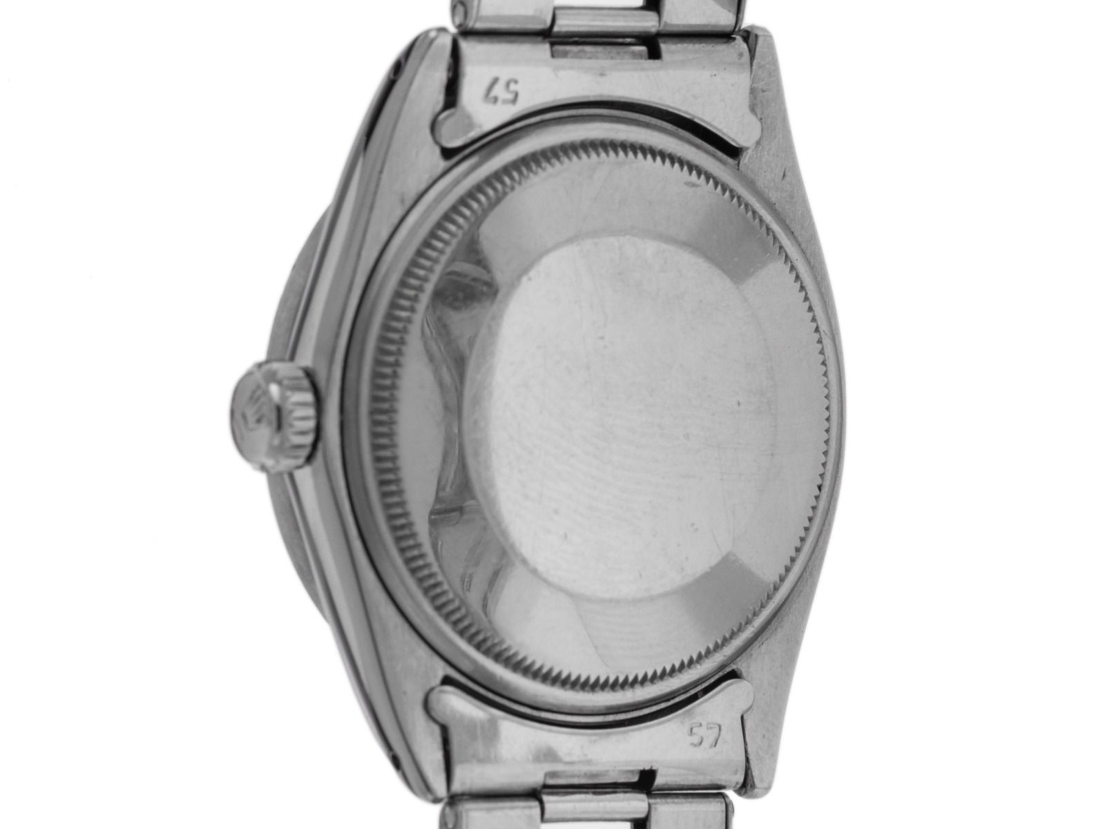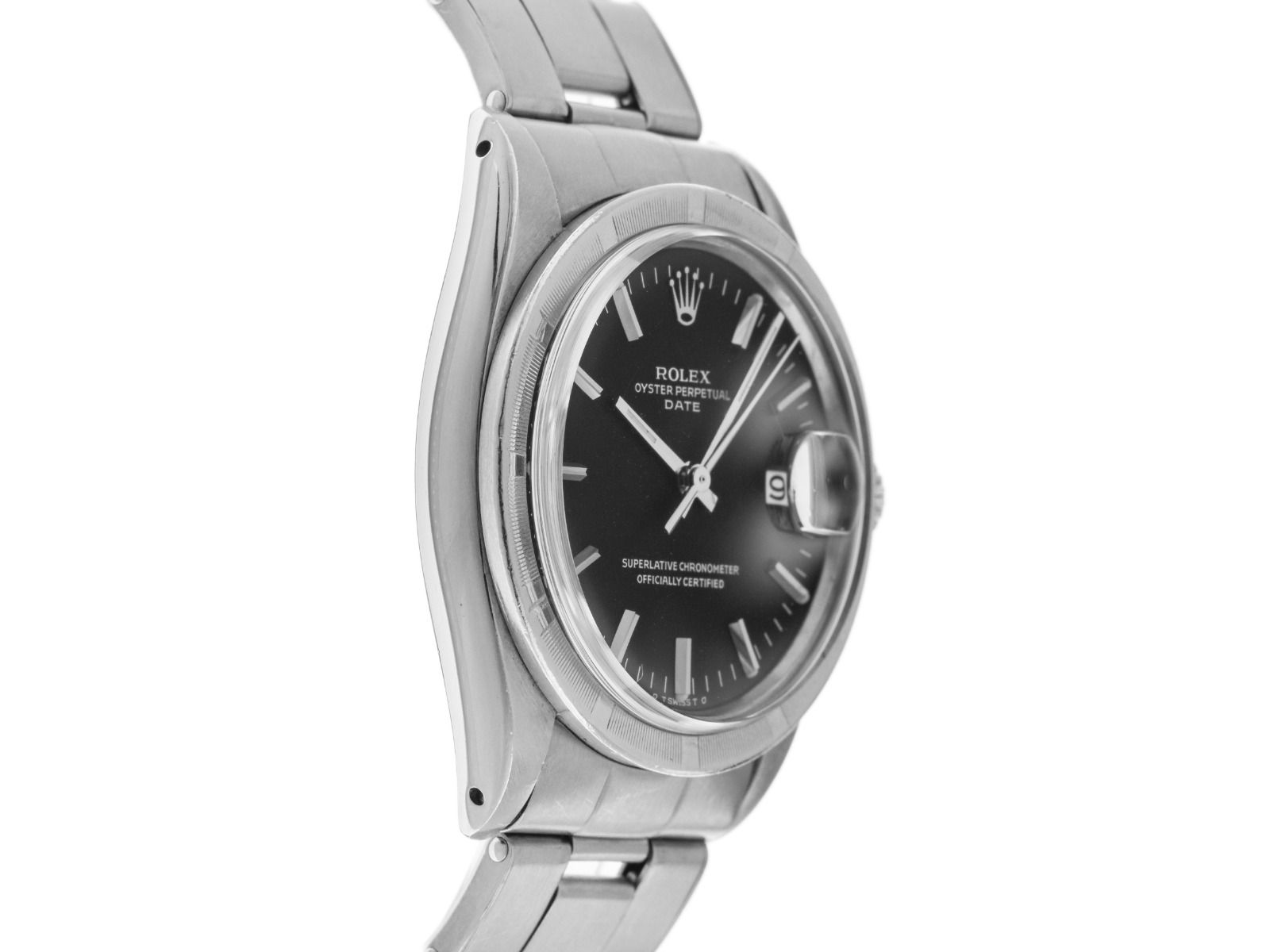 Rolex Oyster Perpetual Date Stahl Automatik Armband Oyster Gehäuse Edelstahl satiniert, Gehäusedurchmesser ohne Krone 35mm, Gehäusehöhe 12,0mm. Lünette Edelstahl poliert und geriffelt mit 12 Stunden Einteilung. Armband Oyster Edelstahl poliert und satiniert, Faltschließe Edelstahl mit Hersteller-Logo. Zifferblatt schwarz mit aufgesetzten weißgoldenen Indexen und weißgoldenen Zeigern. Uhrwerk Automatik, Chronometer, Rolex Manufakturkaliber 1570 mit 26 Edelsteinen. Anzeige von Stunde, Minute und Sekunde über Zeiger aus der Mitte mit Sekundenstopp zur sekundengenauen Einstellung der Uhrzeit, Datumsanzeige unter Glaslupe bei 3 Uhr. Plexiglas gewölbt. Krone verschraubbar mit Hersteller-Logo. Boden Edelstahl verschraubt. Gewicht der Uhr inklusive Armband 92g, Länge des Armbandes inklusive Gehäuse 150 - 170mm, siehe Bild Nummer 8. Referenznummer: 1501, Gehäusenummer: 1076XXX, Baujahr: 1964, ID: ST657272000426HW-6900, Artikelnummer: 10000085736. Original Rolex Box mit Umkarton sowie Ledermäppchen, Übersetzungsheft, Rolex Chronometer-Siegel und Watchregister Auszug von April 2026, The Watch Register Zertifikat / ohne Eintrag (Internationale Datenbank für verlorene oder gestohlene Uhren). Superschnäppchen, Kapitalanlage mit Wertsteigerungspotential, extrem seltenes Sannlerstück. Original unpoliert, kann auf Wunsch kostenlos aufgearbeitet werden . Lieferzeit sofort. Inklusive certified pre owned Siegel / Uhrenpass mit einem Farbbild, der genauen Beschreibung sowie dem Wiederbeschaffungswert der Uhr über 6900,-€ und 1000 Tage Garantie ab Kaufdatum.