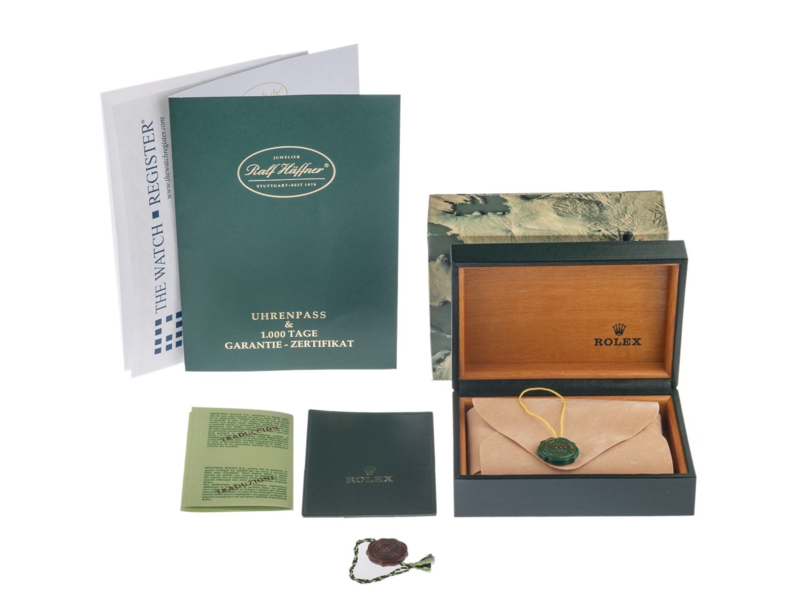 Inclus : sceau certified pre owned / passeport de montre avec une image couleur, la description exacte ainsi que la valeur de remplacement de la montre supérieure à 6900,-€ et 1000 jours de garantie à partir de la date d'achat.