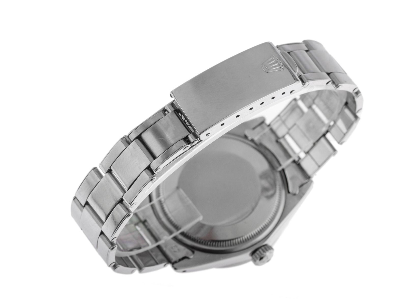 Boîtier en acier inoxydable satiné, diamètre du boîtier sans couronne 35mm, hauteur du boîtier 12,0mm. Lunette en acier inoxydable polie et striée avec graduation de 12 heures. Bracelet Oyster en acier inoxydable poli et satiné, fermoir déployant en acier inoxydable avec logo du fabricant. Cadran noir avec index en or blanc appliqués et aiguilles en or blanc. Mouvement automatique, chronomètre, calibre manufacture Rolex 1570 avec 26 pierres précieuses. Affichage de l'heure, des minutes et des secondes par aiguilles centrales avec stop-seconde pour un réglage précis de l'heure, affichage de la date sous loupe à 3 heures. Verre acrylique bombé. Couronne vissée avec logo du fabricant. Fond en acier inoxydable vissé. Poids de la montre avec bracelet 92g, longueur du bracelet avec boîtier 150 - 170mm, voir image numéro 8. Numéro de référence : 1501, numéro de boîtier : 1076XXX, année de fabrication : 1964, ID : ST657272000426HW-6900, numéro d'article : 10000085736. Boîte Rolex d'origine avec carton d'emballage ainsi que pochette en cuir, livret de traduction, sceau de chronomètre Rolex et extrait du registre des montres d'avril 2026, certificat The Watch Register / sans inscription (base de données internationale pour montres perdues ou volées). Super affaire, investissement avec potentiel d'appréciation, pièce extrêmement rare. Original non poli, peut être remis en état gratuitement sur demande. Délai de livraison immédiat.