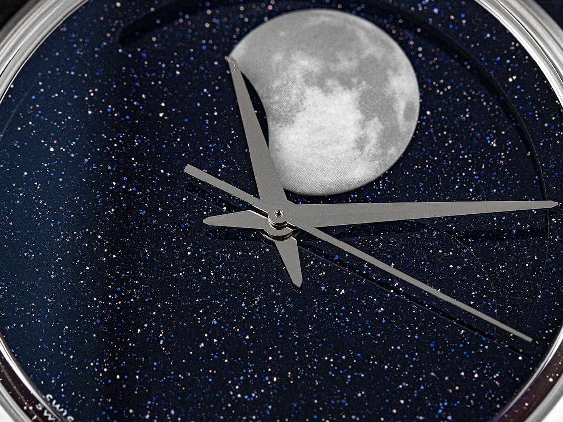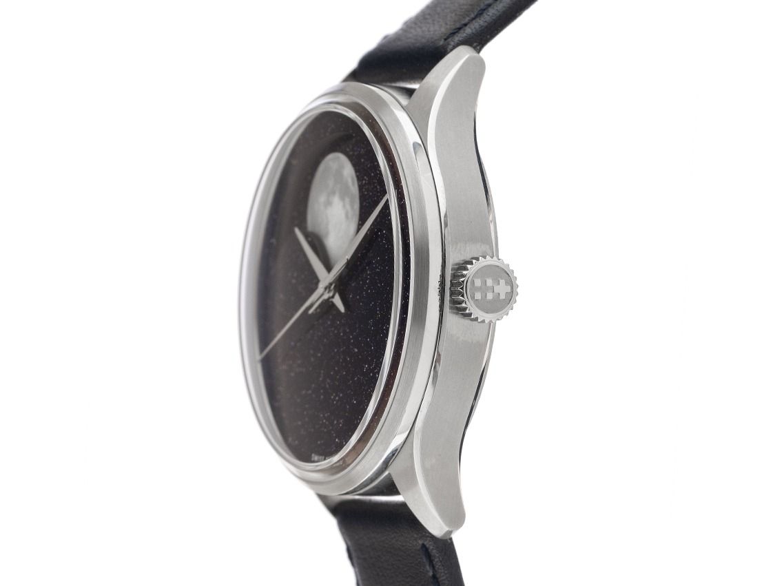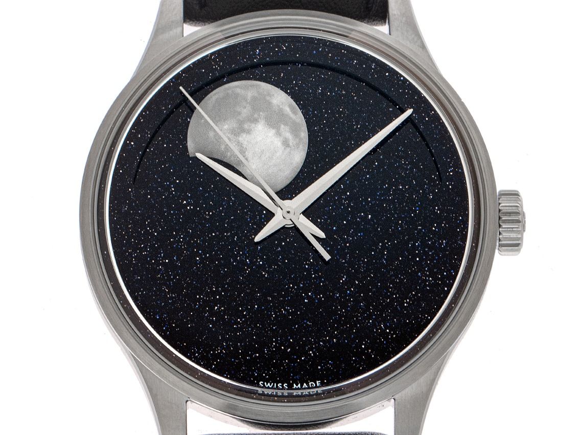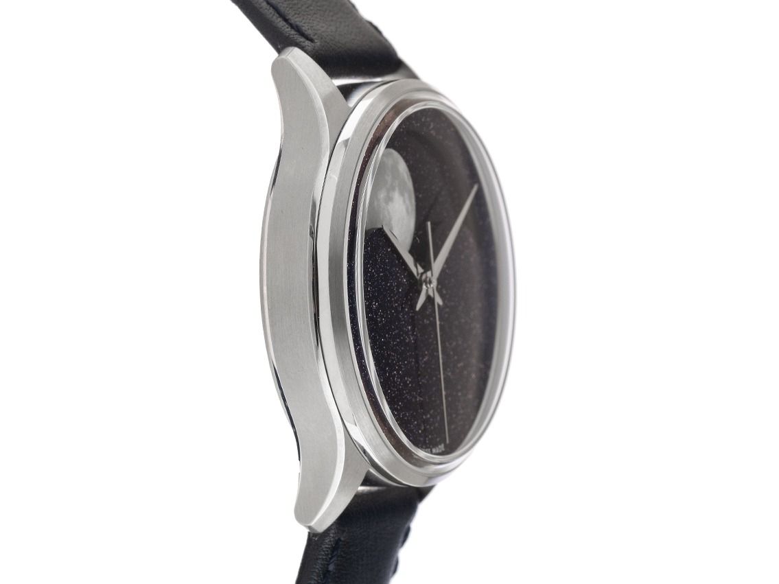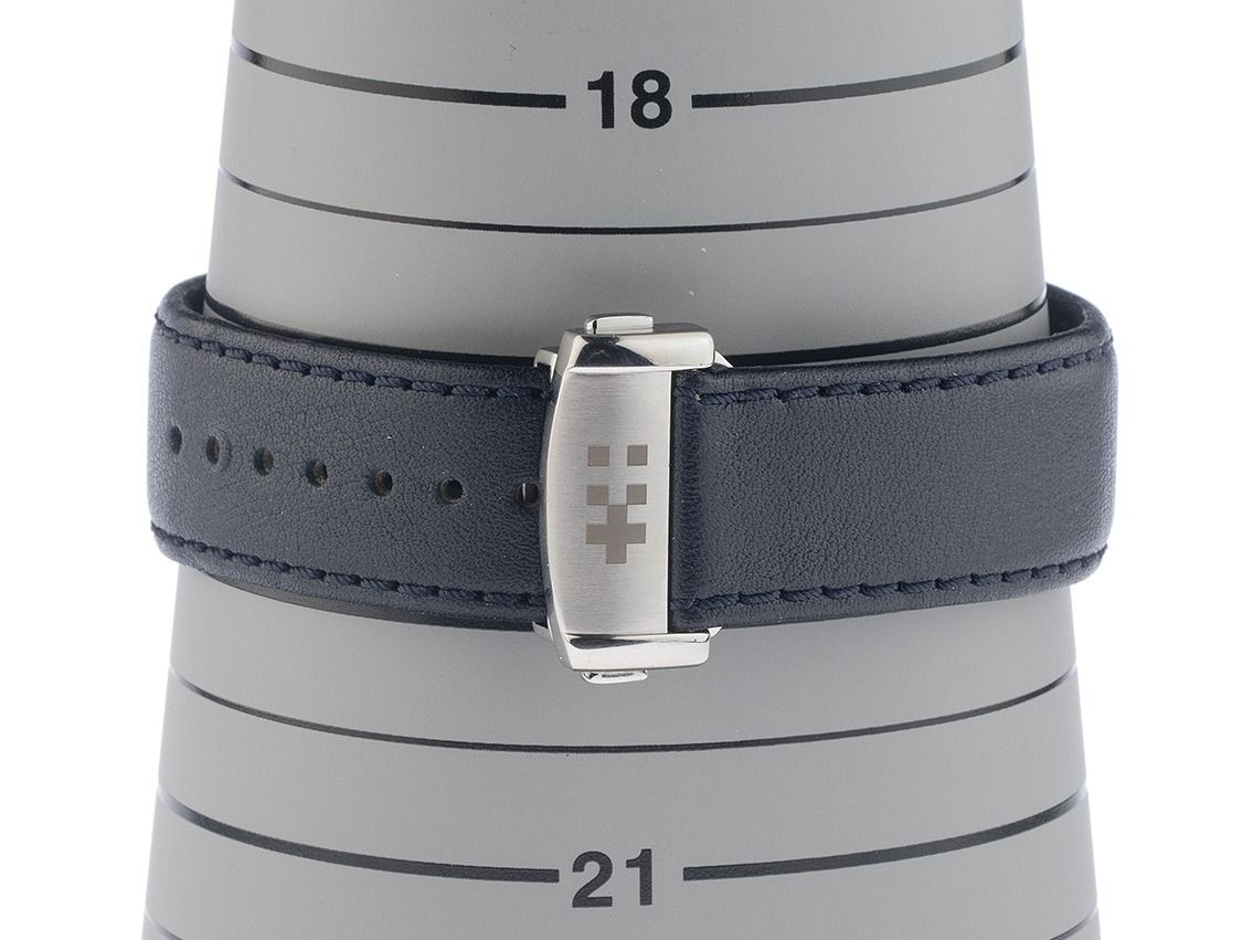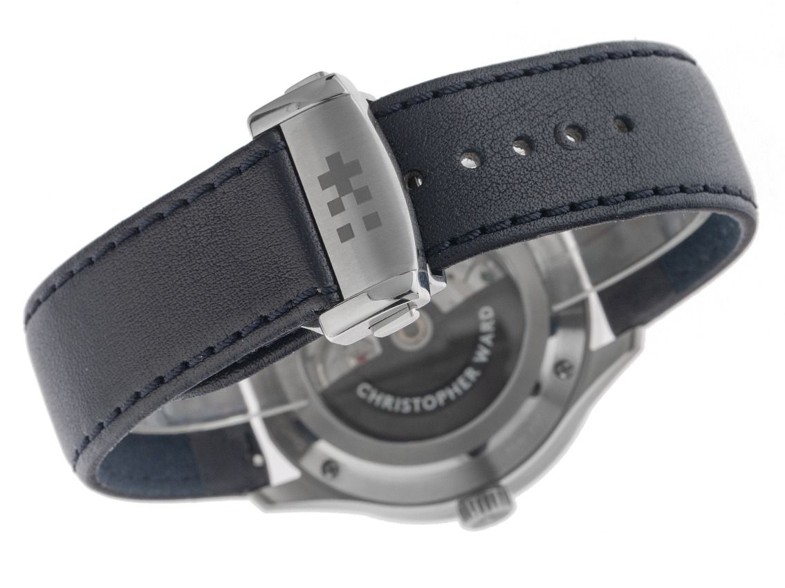Christopher Ward C1 Mondphase Acier Automatique Bracelet Cuir Boucle Déployante Boîtier en acier inoxydable poli et satiné, diamètre du boîtier sans couronne 40,5 mm, hauteur du boîtier 13,6 mm. Lunette en acier inoxydable poli et satiné. Bracelet en cuir bleu foncé avec surpiqûre, largeur de l'entrecorne 20 mm, boucle déployante de sécurité en acier inoxydable avec logo du fabricant. Cadran en aventurine bleu avec éclat doré et aiguilles en acier inoxydable. Mouvement automatique, calibre manufacturé Christopher Ward JJ04. Affichage des heures, minutes et secondes par aiguilles centrales avec arrêt des secondes pour un réglage précis de l'heure, affichage des phases de lune à 12 heures. Verre saphir résistant aux rayures. Fond en acier inoxydable vissé 4 fois et gravé avec fenêtre en verre saphir. Poids de la montre avec bracelet 92 g, longueur du bracelet avec boîtier 145 - 200 mm, voir image numéro 8. Étanche jusqu'à 3 ATM. Numéro de référence : C01-40AMP2-S00B0, ID : P294615000426H-2725, numéro d'article : 10000085756. Boîte originale Christopher Ward avec carton d'emballage et papiers de garantie du 27 octobre 2023 ainsi que description et extrait du registre des montres d'avril 2026, certificat The Watch Register / sans inscription (base de données internationale pour montres perdues ou volées), ensemble complet. Super affaire, investissement avec potentiel de valorisation, pièce de collection extrêmement rare. Non portée. Délai de livraison immédiat. Inclus : sceau certified pre owned / passeport de montre avec une image couleur, la description précise ainsi que la valeur de remplacement de la montre supérieure à 2725,-€ et 1000 jours de garantie à partir de la date d'achat.