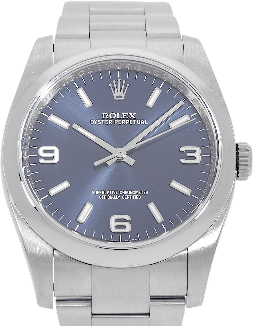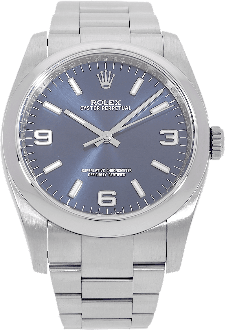 Rolex Oyster Perpetual, Reference: 116000, Gender: Unisex, Size: 36mm, Dial color: Blue, Strap material: Stainless Steel, Movement: Automatic, Year: 2013, Condition: Previously worn, minor to no signs of usage. The movement is flawless and the case has been cleaned. watch tested ensure full functionality. An inspection by our certified watchmakers guarantees its authenticity., Documents: Original papers, CHRONEXT Certificate