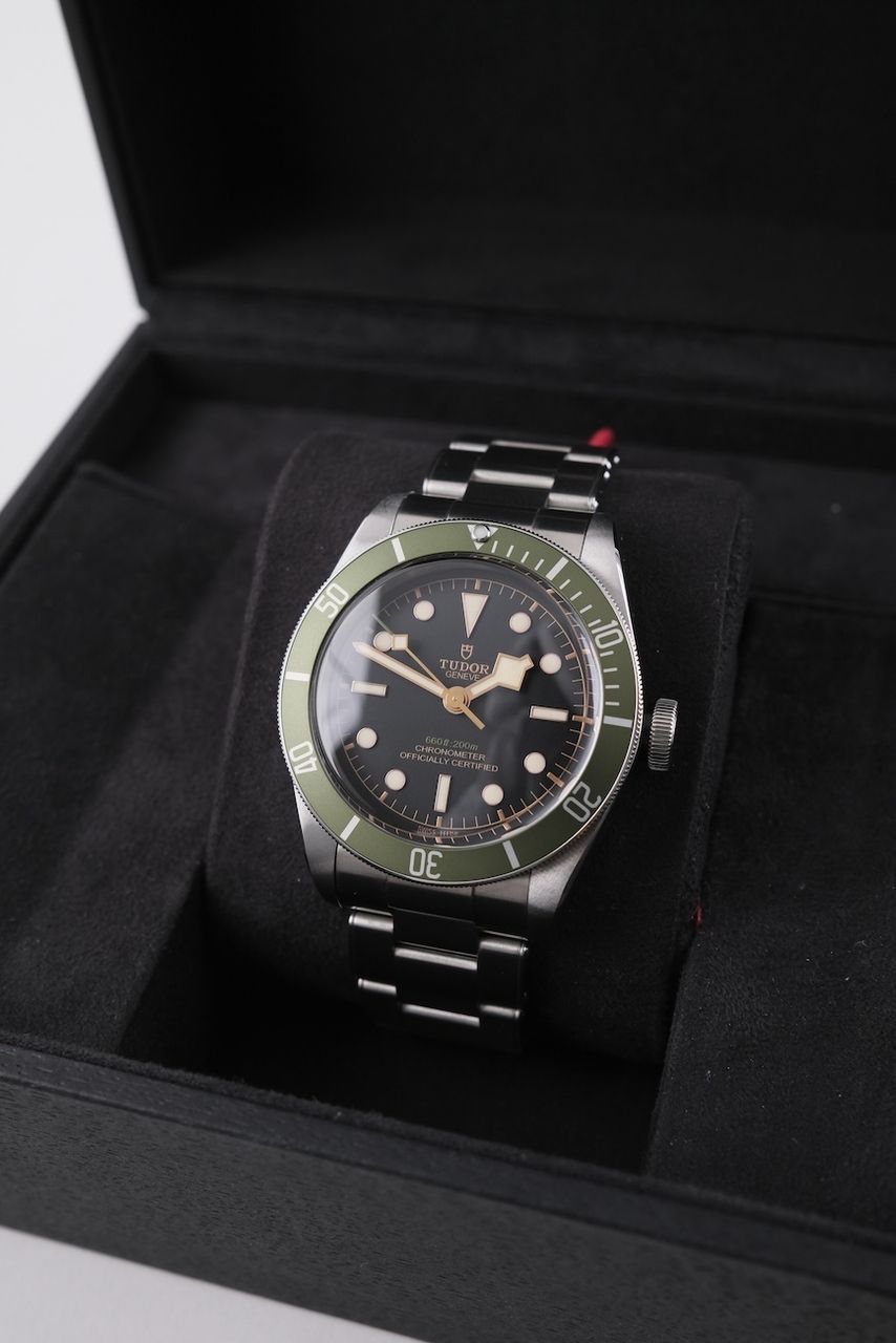 **Watch Description** Ready for your new dream watch? Perhaps this beautiful Tudor Black Bay made of Steel will soon be on your wrist. Whether vintage or modern - with over 200 watches in stock, we always have your new luxury watch available for you immediately - whether you are a first-time buyer or your watch collection needs a new addition. **FACT CHECK - Everything you need to know:** - Movement checked for running behavior and no pending service. - If you like the watch in the pictures, you'll love it on your wrist. Our macro shots are unedited and show more than your eye can see. **SPECIFICATIONS AND SCOPE OF DELIVERY - This is how your new watch will arrive:** - Case diameter: 41mm - Wrist circumference: up to 21cm - Year of manufacture: 2018 - Case material: Steel - Strap material: Steel - Bracelet color: Steel - Dial color: Black - Reference number: 79230G - Movement: Automatic - Original box included - Original papers - 12 months warranty - The complete scope of delivery can be seen in the pictures **QUALITY PROMISE** Every watch is checked for authenticity and function by our master watchmaker. So you get the all-round carefree package and an additional 12-month warranty! **INSPECTION AND SHIPPING** - Worldwide insured priority transport with tracking number. We deliver to watch lovers and collectors worldwide. Whether Asia, America, Australia or any other part of the world - the watch pictured can be on your wrist in just a few days. Within the EU even next-day. Alternatively, we would be happy to meet you at one of our 2 locations in southern Germany by prior arrangement: - Bavaria: THE BANK 94436 - Baden-Württemberg: THE LOFT 89073 - We also offer you a trade-in of your watch(es) to make the deal possible. - The purchase price is taxed according to §25 UStG. VAT is therefore not shown. - Prices include all taxes and fees for deliveries within the EU. There are no additional costs. **WatchId:** GID-8ec6-1d2c