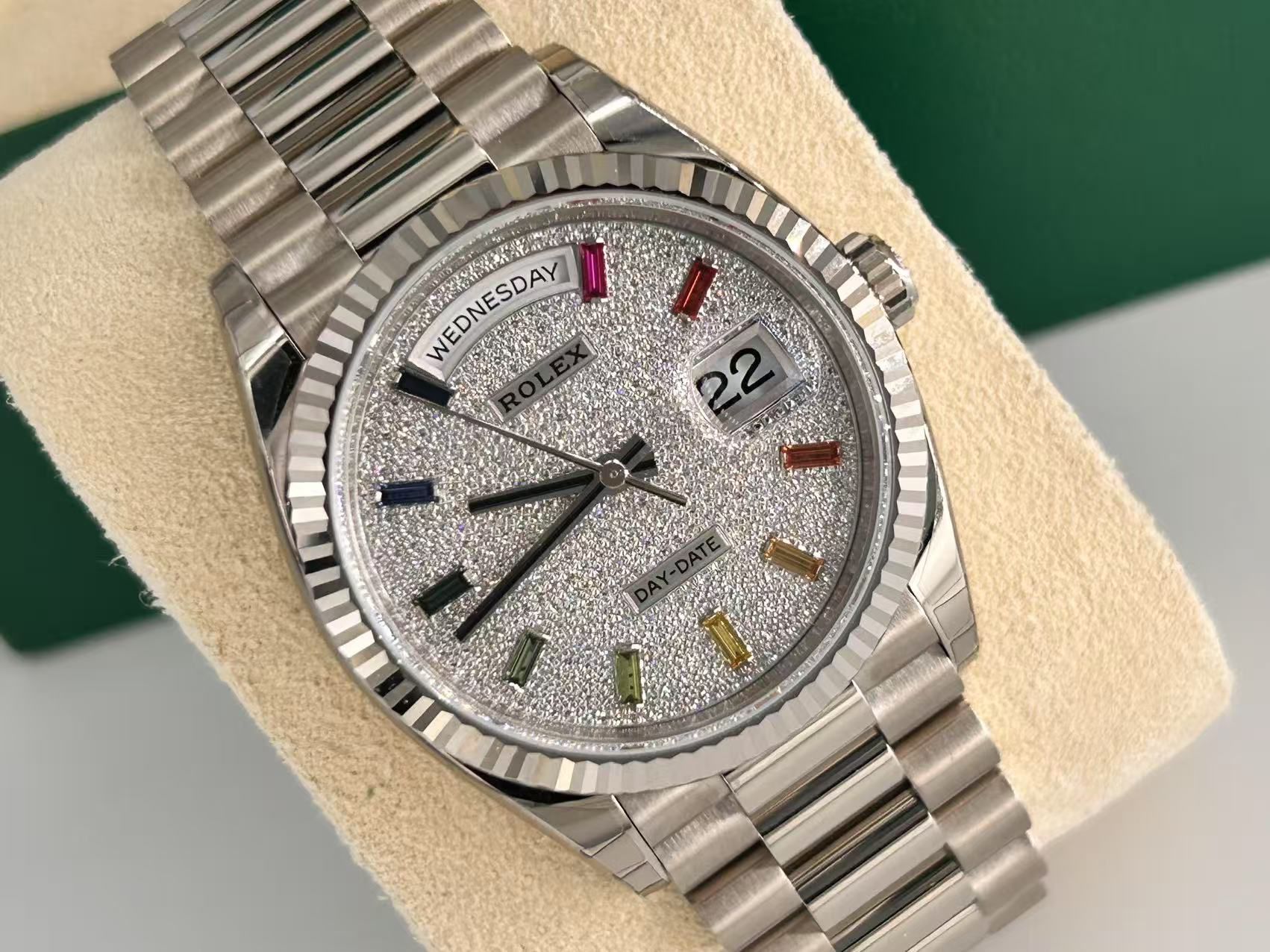 Rolex Day-Date 36 M128239-0019 - Diamond-paved dial, fluted bezel, president bracelet