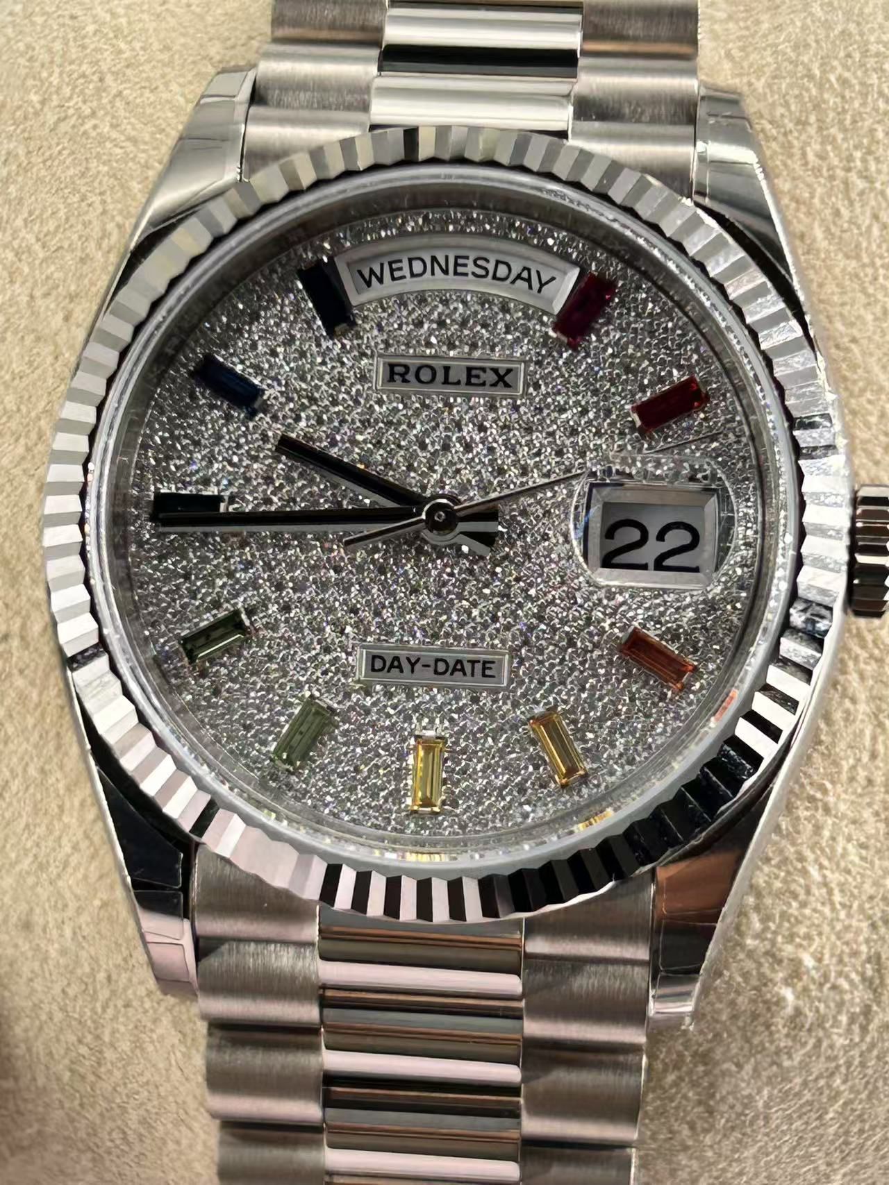 Rolex Day-Date 36 Rolex Day-Date 36 M128239-0019 - Diamond-paved dial, fluted bezel, president bracelet