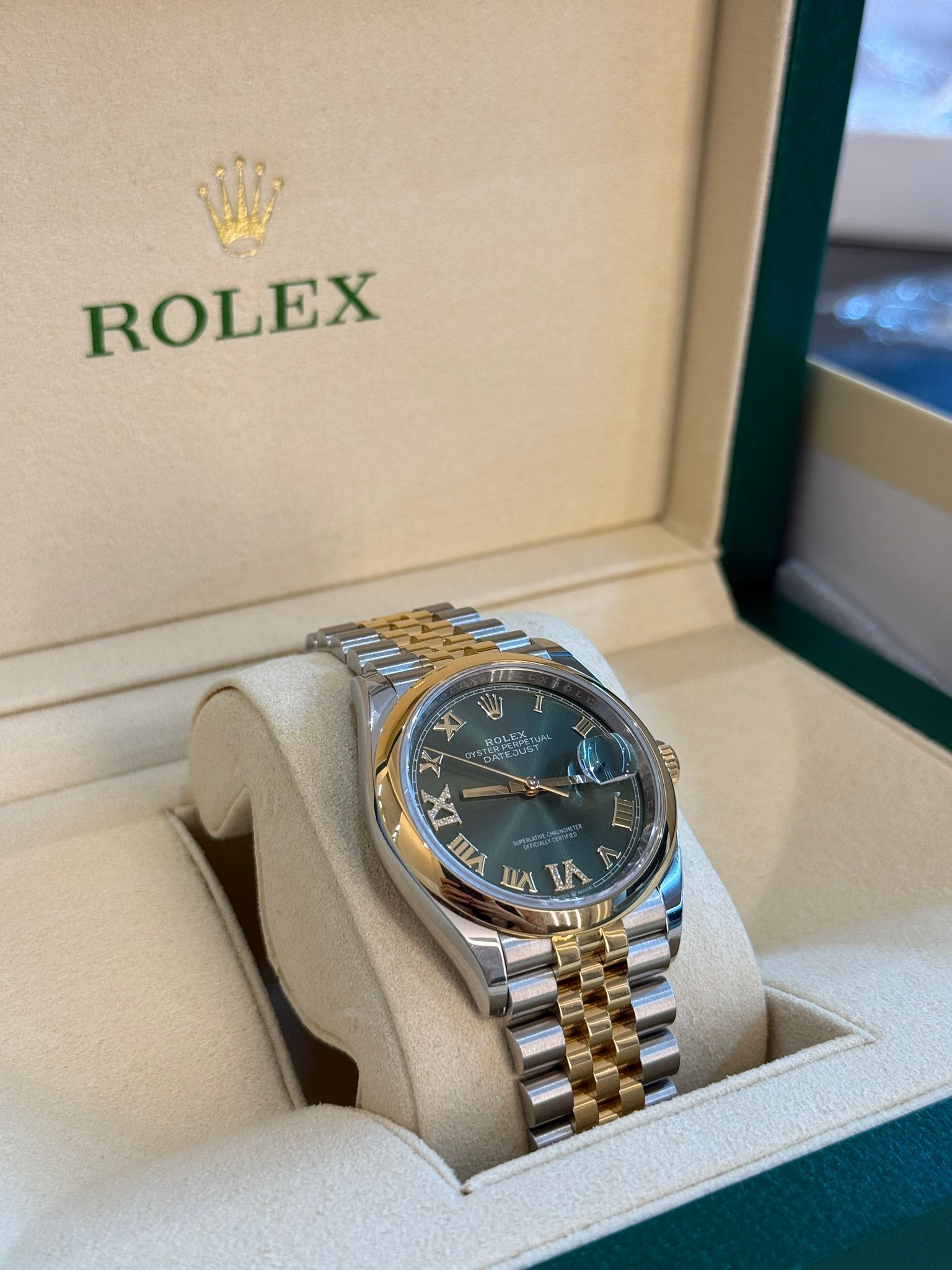 Rolex Datejust 36 Rolex Datejust 36 M126203-0025 - Olive green set with diamonds Dial | Domed Bezel | Jubilee Bracelet