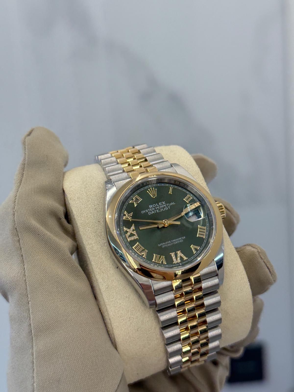 Rolex Datejust 36 M126203-0025 - Olive green set with diamonds Dial | Domed Bezel | Jubilee Bracelet