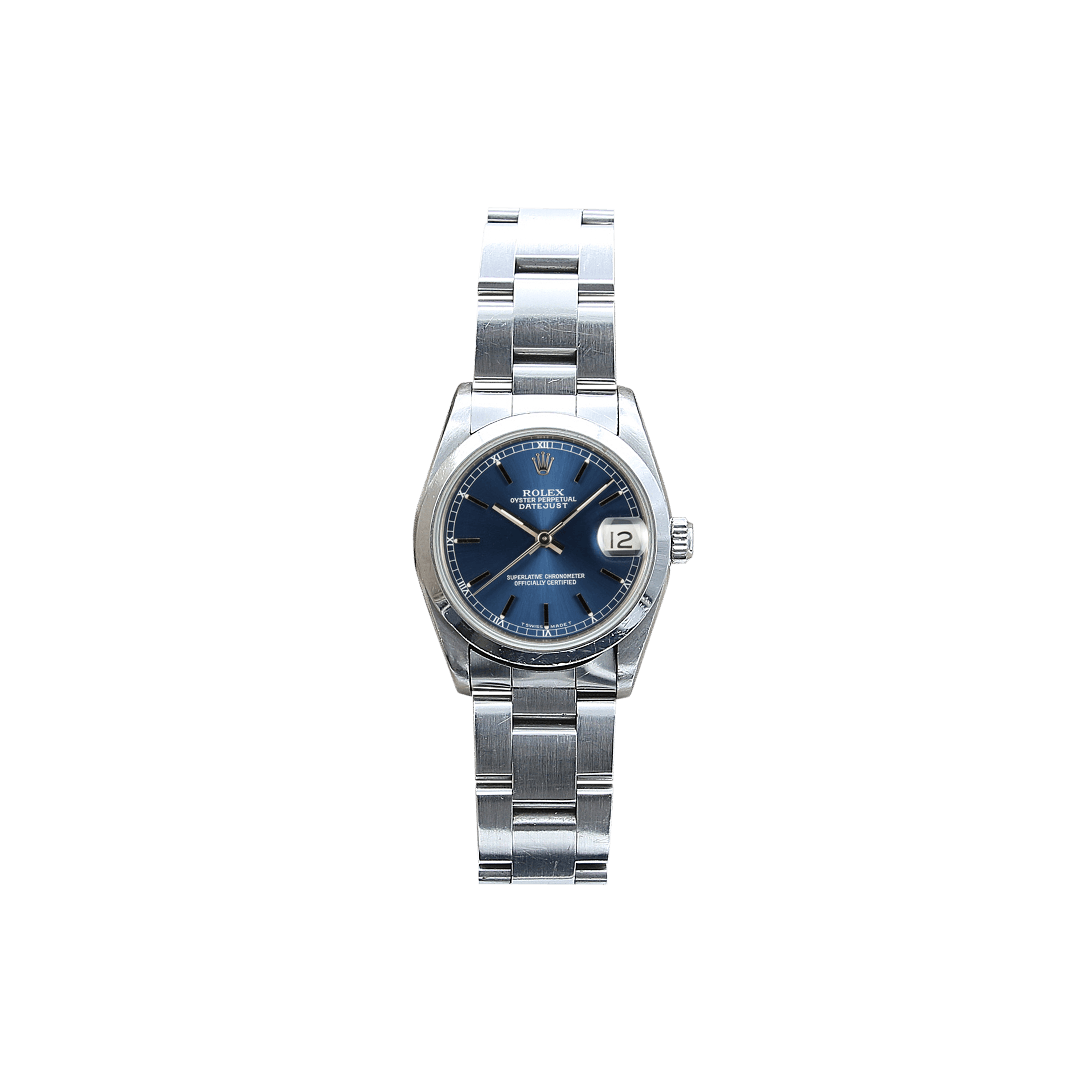For sale at Debonar Watches: pre-owned Rolex Datejust ref. 68240, with a stunning blue dial with circle minutes and a domed steel bezel.Instead of a traditional 26mm or 28mm ladies case, this mid-size example features a slightly larger 31mm case. Just large enough to make a statement while maintaining a flattering and fashion-forward design.Wear it alone or stack this pre-owned Datejust with other bracelets for a look that will steal the attention of everyone you meet. BRAND ROLEX MODEL DATEJUST REFERENCE 68240 CASE MATERIAL STEEL (DOMED) MOVEMENT AUTOMATIC DIMENSION 31 MM DIAL BLUE CIRCLE HOURS BEZEL STEEL CRYSTAL SAPPHIRE BRACELET TYPE OYSTER BRACELET MATERIAL STEEL BRACELET LENGHT 17 CM ORIGINAL BOX NO ORIGINAL PAPERS NO YEAR APPROX. THE '90s-'00s CONDITION VERY GOOD
