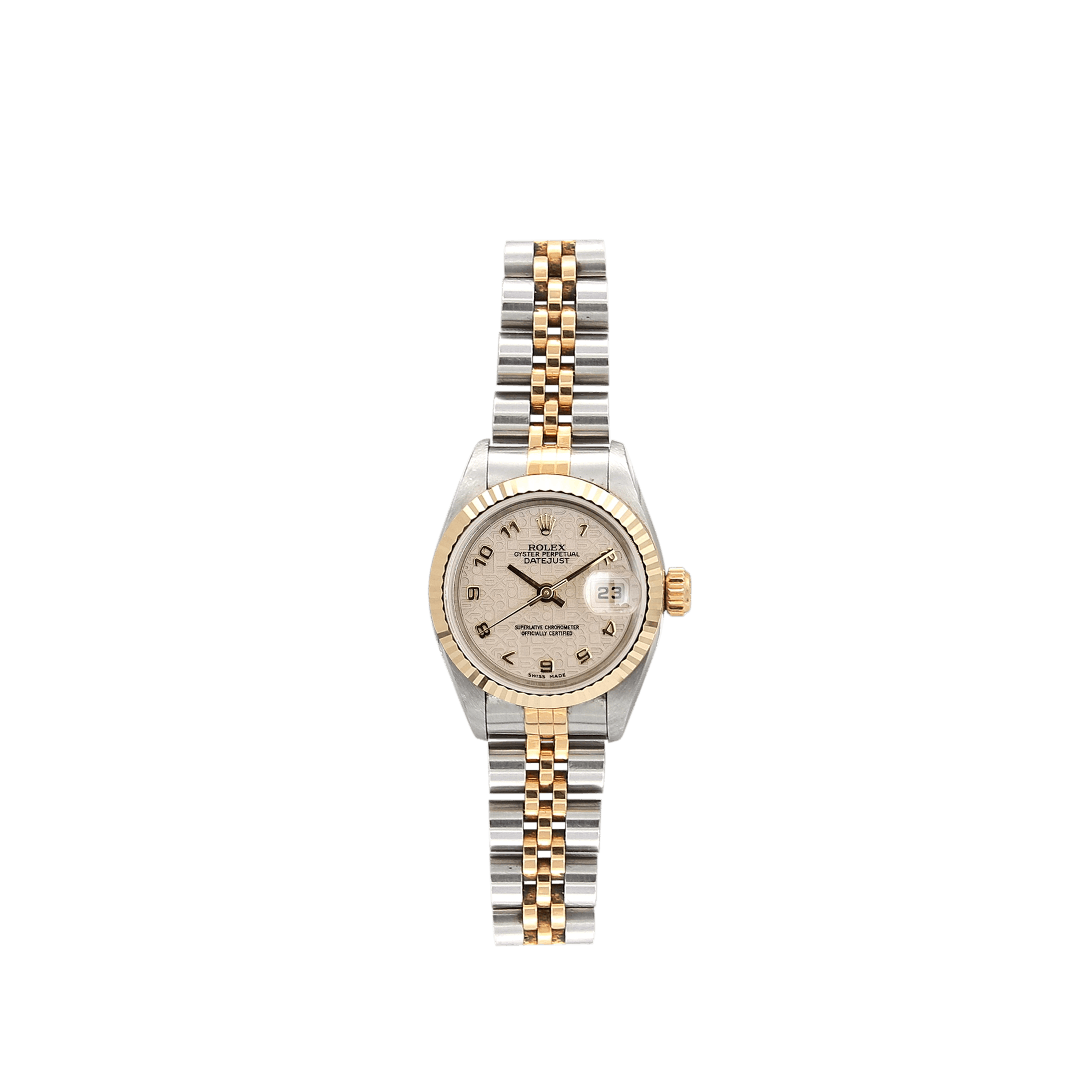 For sale at Debonar Watches: pre-owned Rolex Datejust Lady ref. 69173, on an Jubilee bracelet, full set.It presents a creamy dial with millennary pattern.Feminine elegance at superlative, chronometer certified with a flawless and iconic accurate date display window: a perfect Rolex watch for women.It is one of the finest women’s watches, since 1957. The small 26mm dimensions make this model a manufacturing jeweler Rolex Jubilee Bracelet in agreement with 18k yellow gold and steel. The model is a compliment of sophisticated elegance, signed Rolex.Contact us in case of any doubts/inquiry. BRAND ROLEX MODEL DATEJUST LADY REFERENCE 69173 CASE MATERIAL STEEL/GOLD MOVEMENT AUTOMATIC DIMENSION 26 MM DIAL CREAM MILLENNARY BEZEL GOLD CRYSTAL SAPPHIRE BRACELET TYPE JUBILEE BRACELET MATERIAL STEEL/GOLD BRACELET LENGHT 16 CM ORIGINAL BOX YES ORIGINAL PAPERS YES YEAR APPROX. THE '90s CONDITION VERY GOOD