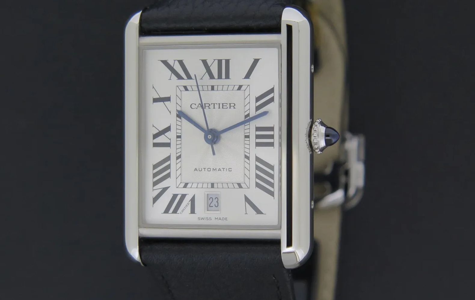 Let’s start with an obvious one. Even though the squarish watches from Cartier started with the Cartier Santos, the Cartier Tank is the watch that is really graved into people their minds, when they think of a squarish or rectangular shaped watch. It has a very elegant design and is seen in different variations. The Cartier Tank was first introduced in 1917. The shape of the watch is said to be inspired by the birds-eye view of the Renault tanks that were seen in the First World War. Prices of the Cartier Tank can vary a lot, starting at roughly €1.500 for the Tank Vermeil up to €20.000 for a solid gold Tank Francaise or Americaine.