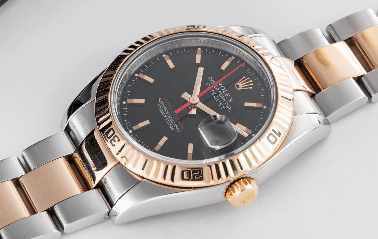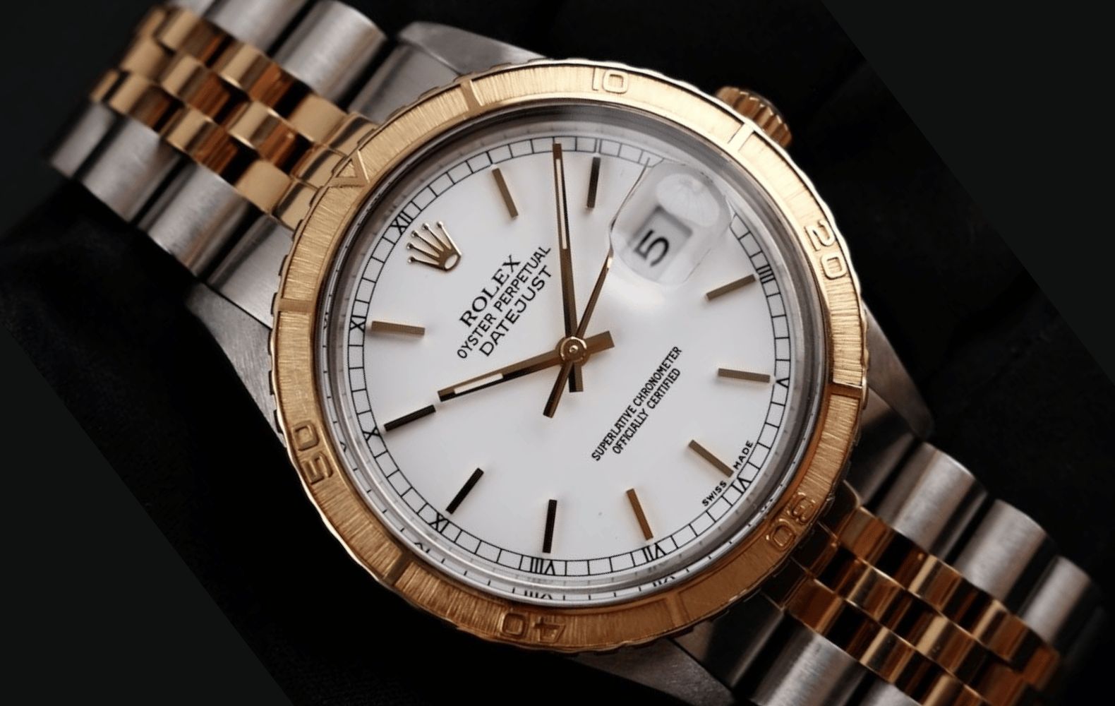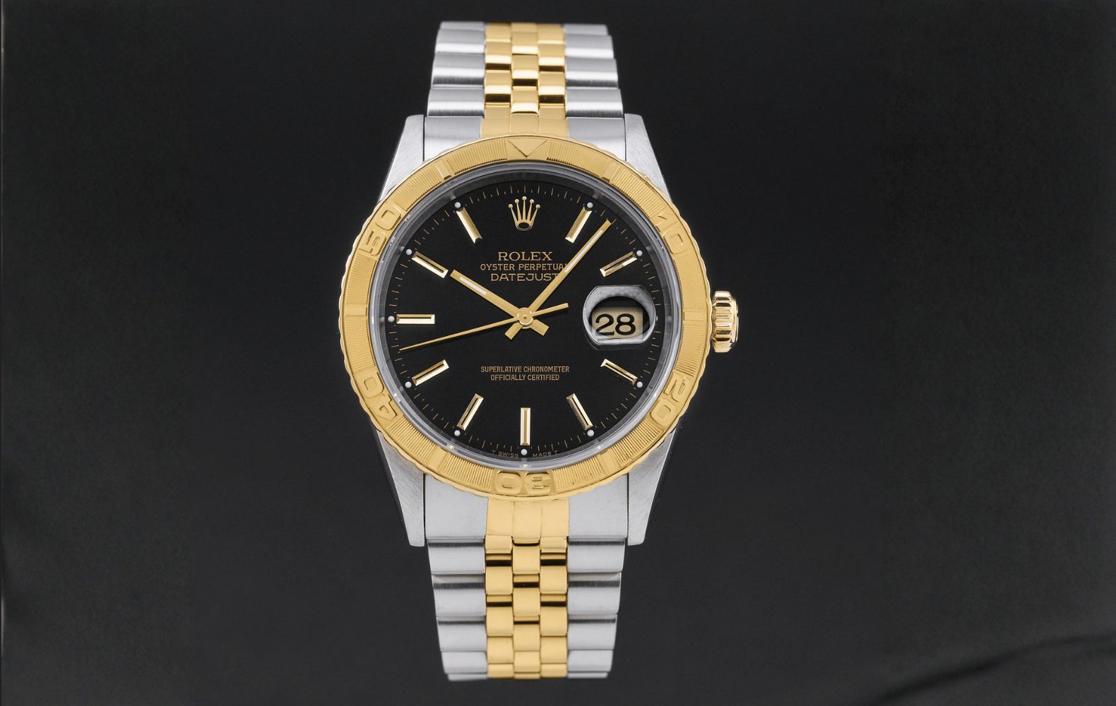 Since any Datejust fitted with a rotating bezel is colloquially called a Thunderbird, buyers should confirm whether a watch is a true Turn‑O‑Graph reference. Check the reference number engraved between the lugs: 6202, 6309, 6609, 1625, 16253, 16263, 16264, 116261, 116263 or 116264 are the accepted Turn‑O‑Graph/Thunderbird codes. If a seller claims a watch has Thunderbirds provenance, look for the emblem on the dial and an inscription such as “U.S. Air Force Thunderbirds” on the caseback. Be sceptical of aftermarket dials or bezels; many Datejusts have had Turn‑O‑Graph bezels installed during service, which makes them functionally similar but not authentic Thunderbirds.