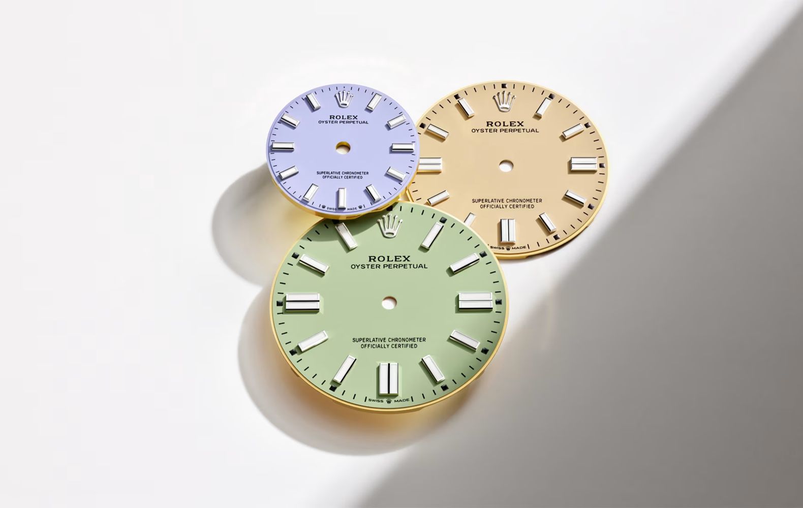 - Matte dials replace sunburst on the Oyster Perpetual 41mm, now under new ref. 134300, for a more refined and elegant look.