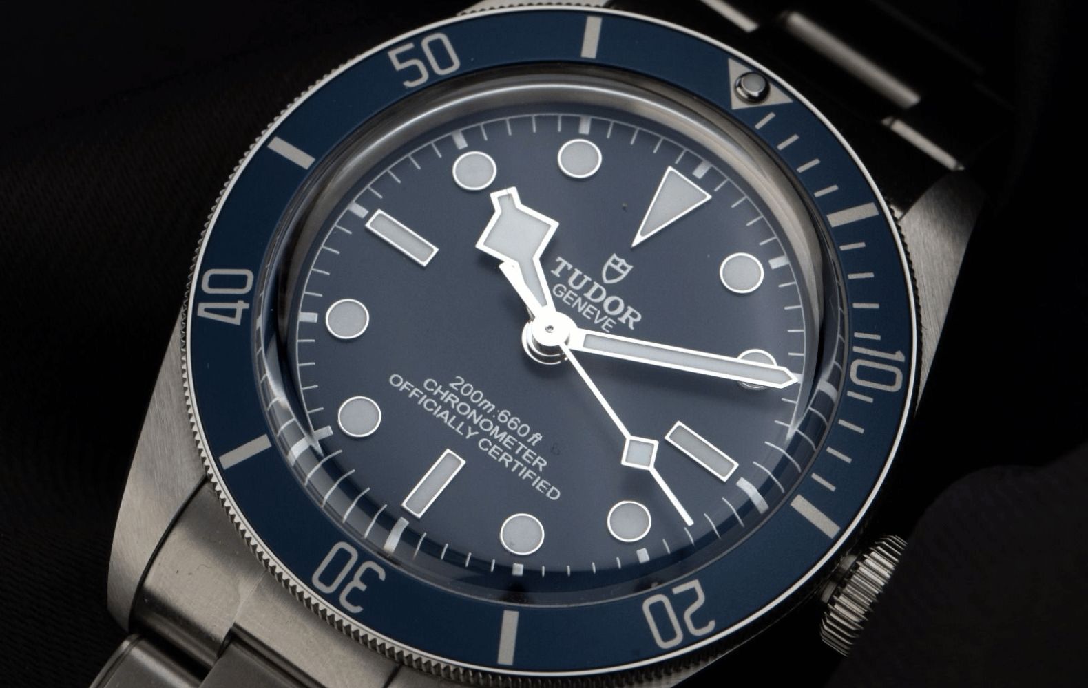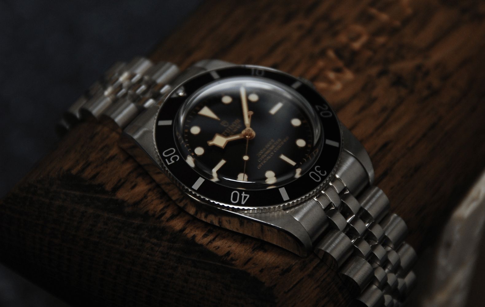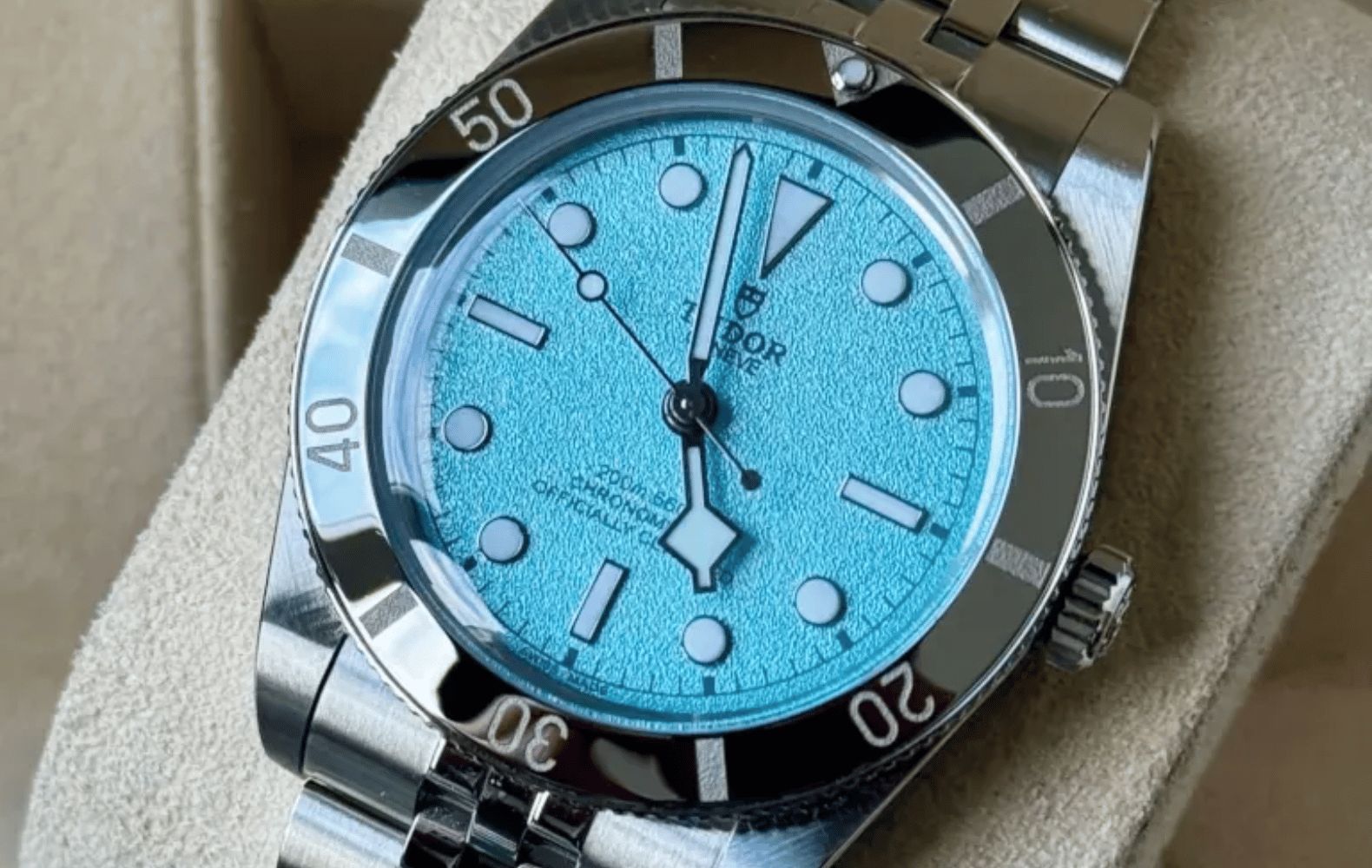 The Black Bay 54 sits as the smallest of the modern line, a 37 mm nod to Tudor’s first diver from 1954, the Oyster Prince Submariner. Its clean bezel ditches minute markers between 12 and 3 o’clock, giving the face a crisp, uncluttered edge. Swap the 58’s snowflake seconds for a lollipop hand and you’ve got a design that whispers vintage instead of shouting it. The sunburst dial gives off subtle shimmer without veering into flash.