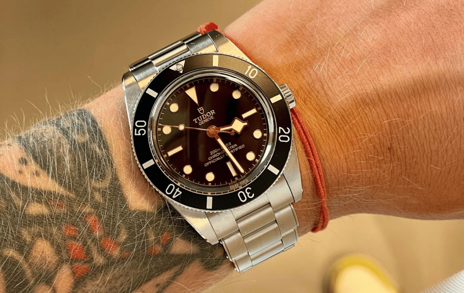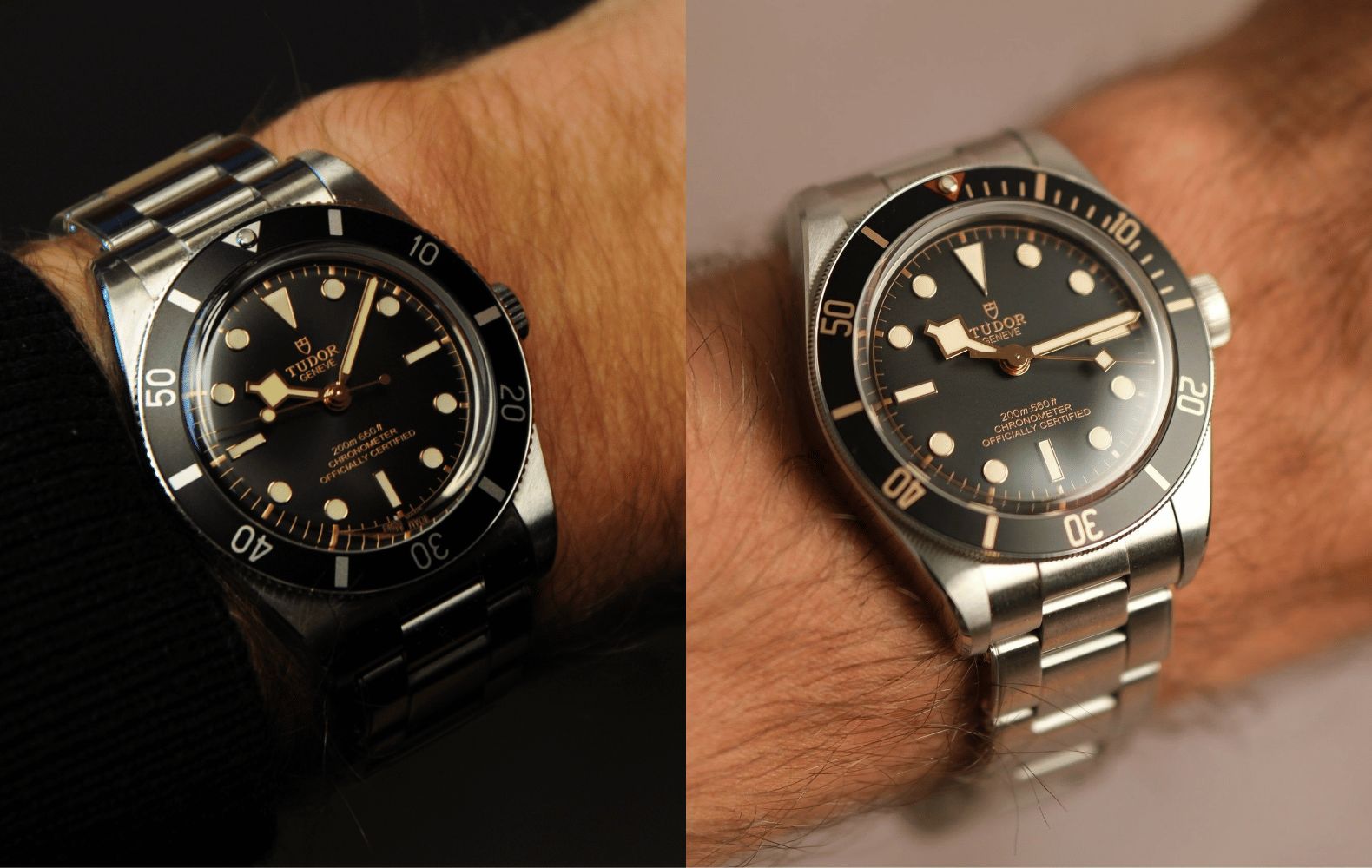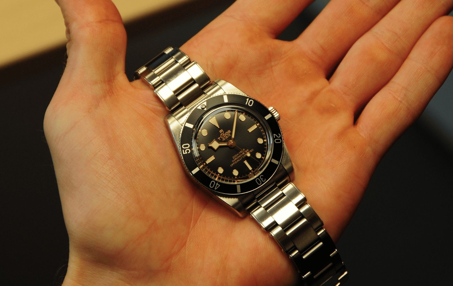 The Black Bay 54 sits as the smallest of the modern line, a 37 mm nod to Tudor’s first diver from 1954, the Oyster Prince Submariner. Its clean bezel ditches minute markers between 12 and 3 o’clock, giving the face a crisp, uncluttered edge. Swap the 58’s snowflake seconds for a lollipop hand and you’ve got a design that whispers vintage instead of shouting it. The sunburst dial gives off subtle shimmer without veering into flash.