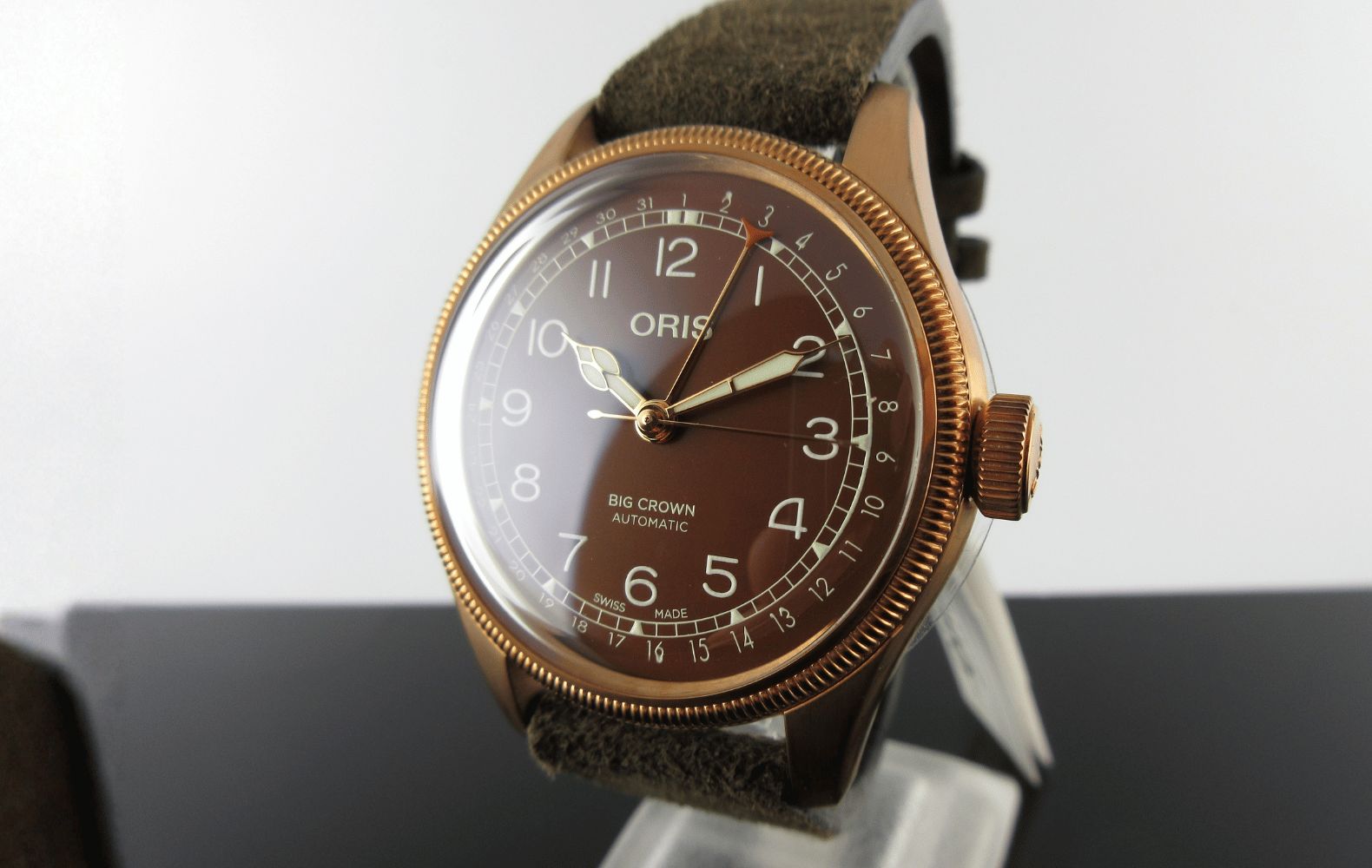 Some older or high-end pieces use pointer dates, where a small hand indicates the date on a numbered scale around the dial, such as the iconic Oris Pointer Date.