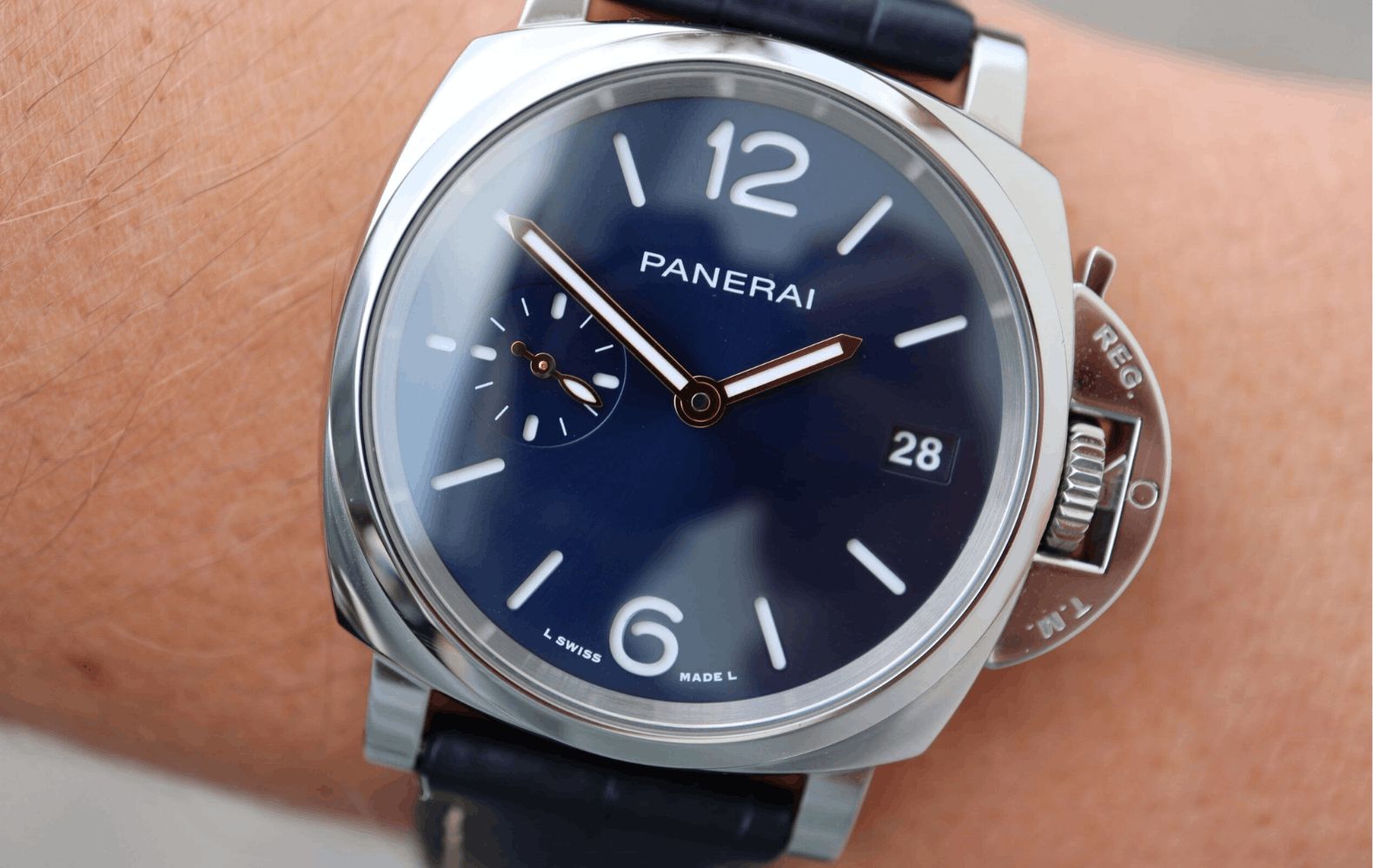 Già al primo sguardo, si notano le differenze tra questi orologi. Il Luminor ha un quadrante classico, con un layout pulito ed essenziale. Presenta indici e lancette di grandi dimensioni per una maggiore leggibilità. Apprezzerai il modo in cui combina raffinatezza e robustezza.