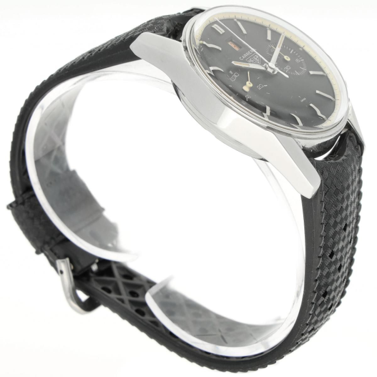 HEUER Carrera from 1966 with a 36mm stainless steel case and pin buckle. The men's HEUER watch is in good condition.Good conditionRef. 3147N36mmDateAutomaticChronograph