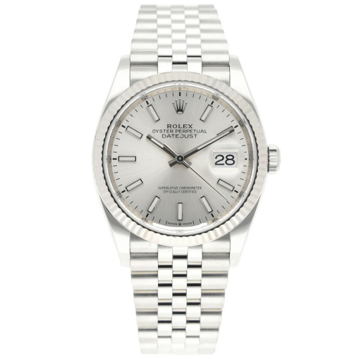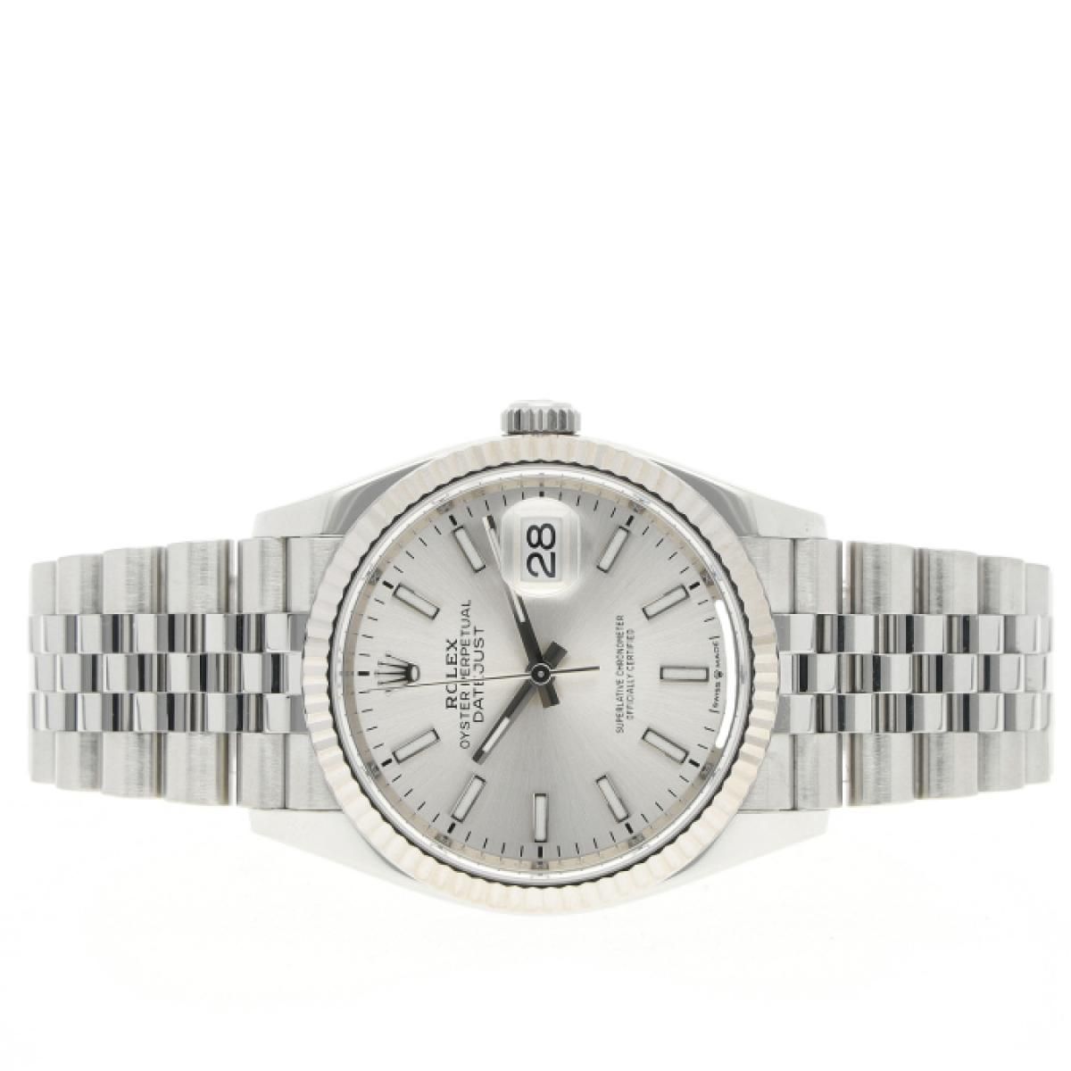 Rolex Datejust 36 from 2020 with a 36mm stainless steel case and folding clasp. The men's Rolex watch is in very good condition.Very good conditionRef. 126234Box + original papersWhite hangtag36mmdateAutomaticChronometer18ct. white goldSilver Dial