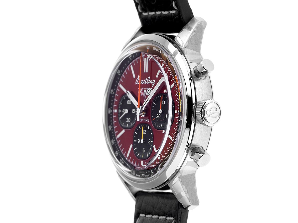 Gehäuse Edelstahl poliert und satiniert, Gehäusedurchmesser ohne Krone 41mm, Gehäusehöhe 13,3mm. Lünette Edelstahl glatt e poliert. Fascia da braccio in Leder nero con Ziernaht, Anstoßbreite 20mm, Sicherheitsfaltschließe Edelstahl con logo dell'azienda. Zifferblatt rot con Leuchtindexen e Edelstahl Leuchtzeigern. Orologio Automatico, Cronografo, Cronometro con Zeugnis, calibro Breitling 01 con 40 Edelsteinen, riserva di carica di circa 70 Stunden. 70 Stunden. Anzeige von Stunde und Minute über Zeiger aus der Mitte, kleine Sekunde mit Sekundenstopp zur sekundengenauen Einstellung der Uhrzeit bei 9 Uhr. Saphirglas kratzfest e doppelseitig entspiegelt. Krone con logo dell'azienda. Corpo in Edelstahl verschraubt e graviert con Saphirglas Sichtfenster. Peso dell'orologio, compreso il bracciale, 98 g. Capacità di carico fino a 10 ATM. Numero di riferimento: AB01761A1K1X1, ID: ST1160103341123H-7250, Artikelnummer: 10000072309. Scatola originale Breitling e carta di garanzia del 2024, set completo. Non usato. Spedizione immediata.