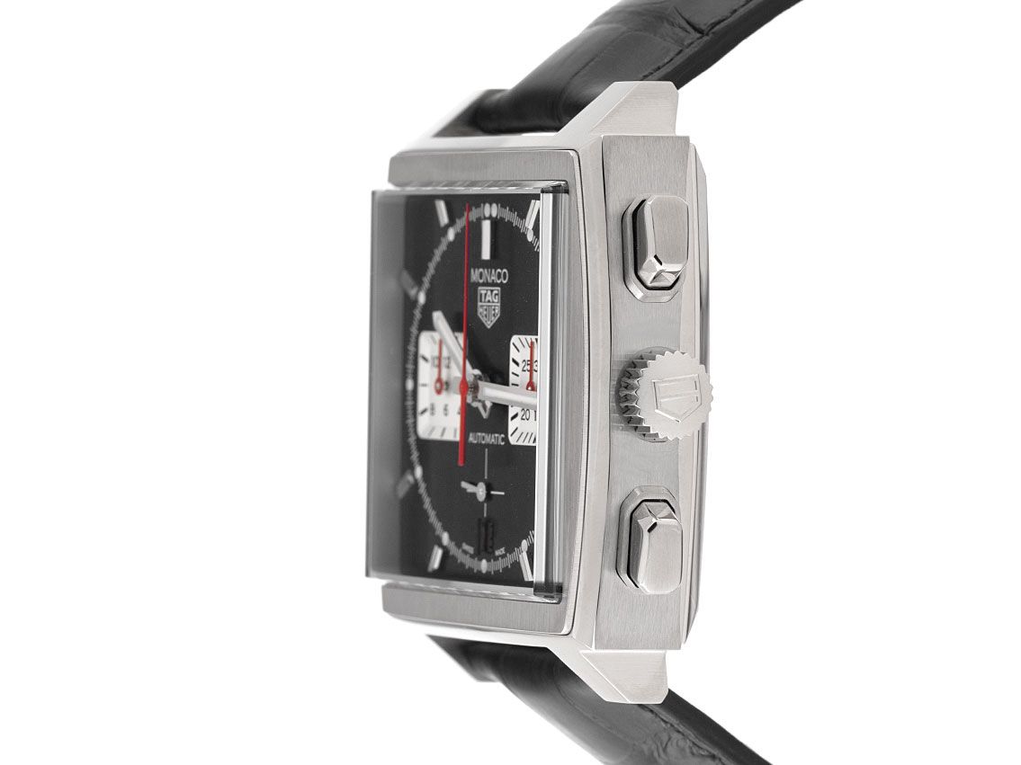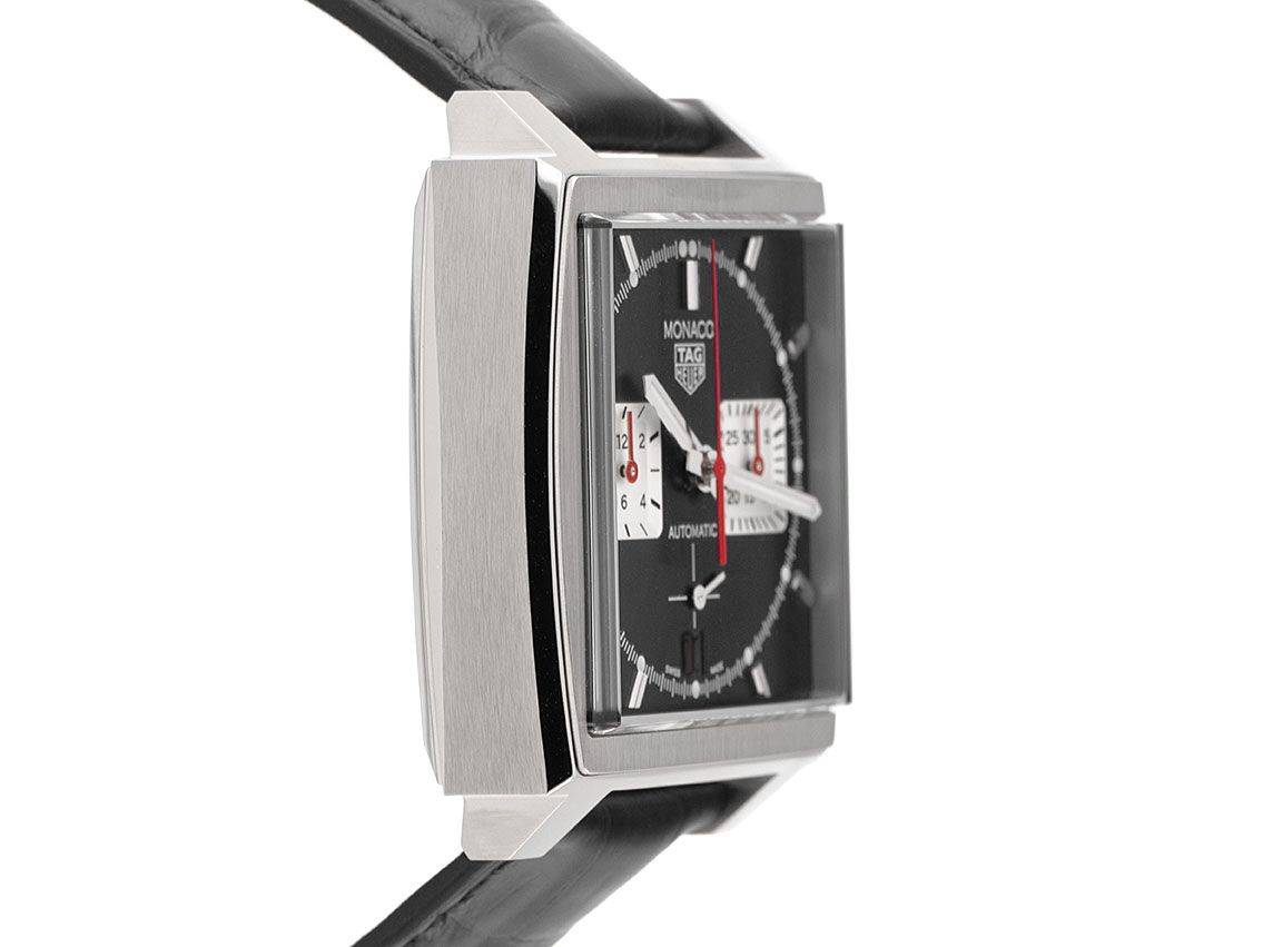Tag Heuer Monaco Stahl Automatik Chronograph Armband Leder Faltschließe