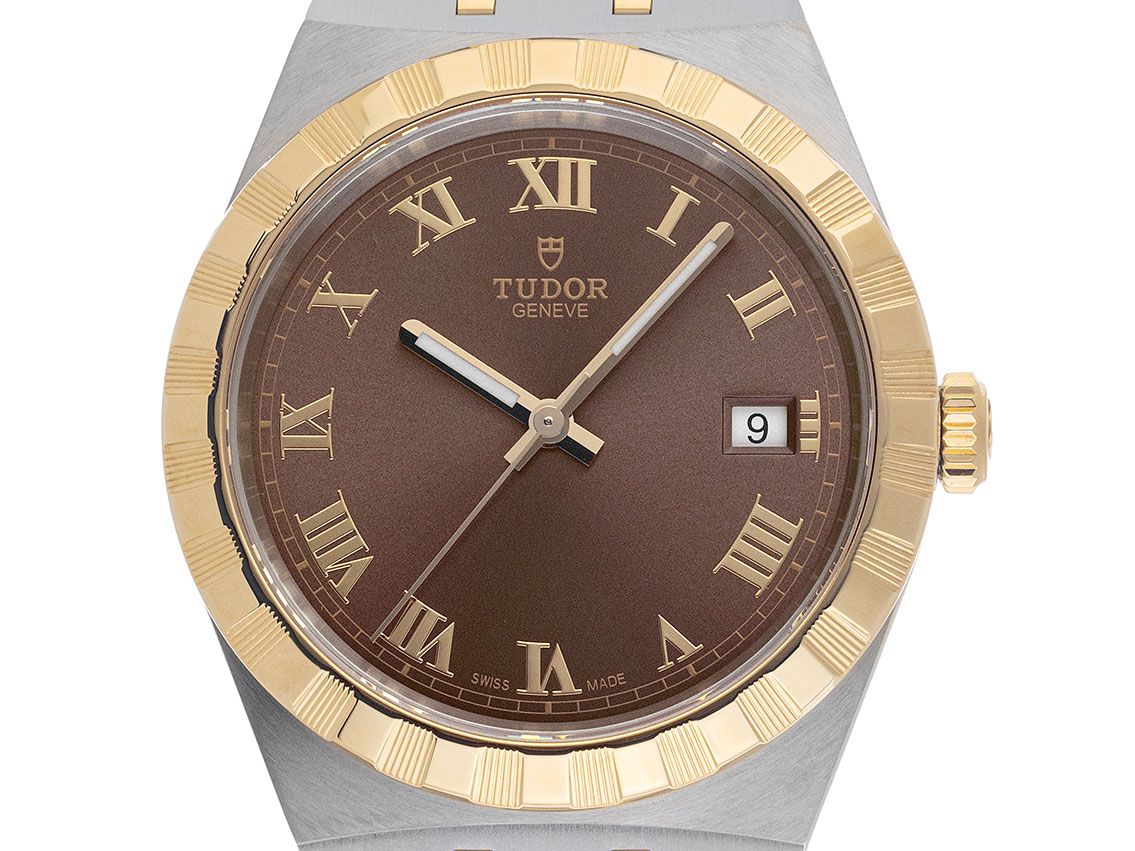 Tudor Tudor Royal Stahl Gelbgold Automatik Armband Stahl GelbgoldGehäuse Edelstahl satiniert und poliert, Gehäusedurchmesser ohne Krone 38mm, Gehäusehöhe 10,4mm. Lünette Gelbgold geriffelt und poliert. Armband Edelstahl / Gelbgold poliert und satiniert, Sicherheitsfaltschließe Edelstahl mit Hersteller-Logo. Zifferblatt schokoladenfarben mit aufgesetzten gelbgoldenen römischen Ziffern und gelbgoldenen Leuchtzeigern. Uhrwerk Automatik, Chronometer mit Zeugnis, Kaliber T601, Gangreserve ca. 38 Stunden. Anzeige von Stunde, Minute und Sekunde über Zeiger aus der Mitte mit Sekundenstopp zur sekundengenauen Einstellung der Uhrzeit, Datumsanzeige mit Schnellverstellung bei 3 Uhr. Saphirglas kratzfest. Krone verschraubbar mit Hersteller-Logo. Boden Edelstahl verschraubt und graviert. Gewicht der Uhr inklusive Armband 142g, Länge des Armbandes inklusive Gehäuse 195mm. Wasserdicht bis 10 ATM. Referenznummer: 28503-0007, ID: ST116056540924H-4090, Artikelnummer: 10000076459. Original Tudor Box mit Umkarton und Garantie Papiere von August 2024 sowie Beschreibung, Full Set. Ungetragen. Lieferzeit sofort.