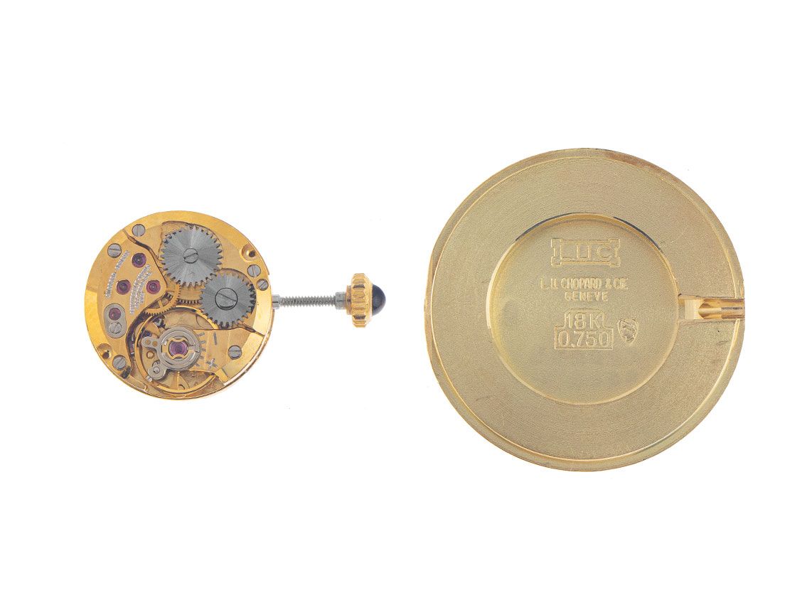 Gehäuse 18kt Gelbgold poliert, Gehäusedurchmesser ohne Krone 24mm, Gehäusehöhe 6,7mm. Armband Leder schwarz mit Ziernaht, Anstoßbreite 11mm, Stiftschließe Gelbgold vergoldet. Zifferblatt goldfarben con anello nero, 3 diamanti "Happy Diamonds" e Zeigern gelbgolden. Strumento di ricarica, Kaliber 2442 con 17 stelle. Anzeige von Stunde und Minute über Zeiger aus der Mitte. Saphirglas kratzfest. Corona 18kt Gelbgold geriffelt mit schwarzem Edelstein. Corpo in gelbgold 18 kt. Peso dell'orologio, compreso il bracciale, 24 g. Numero di riferimento: 4036-6, Gehäusenummer: 162XXX, Baujahr: 1992, ID: P997825001024H-4500, Artikelnummer: 10000076800. Con Gangkontrolle e una completa lavorazione a partire da Oktober 2024, inkl. 1000 Tagen Garantie. Scatola originale Chopard e Uhrenpass. Superschnäppchen, Kapitalanlage mit Wertsteigerungspotential, sehr seltenes Sammlerstück, aus erster Hand, fast nicht getragen. Sehr guter Zustand. Spedizione immediata.