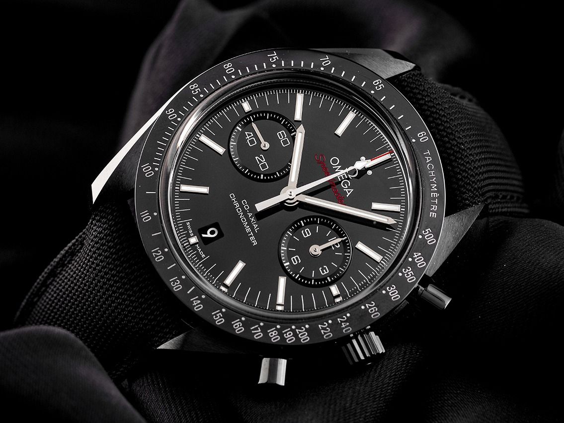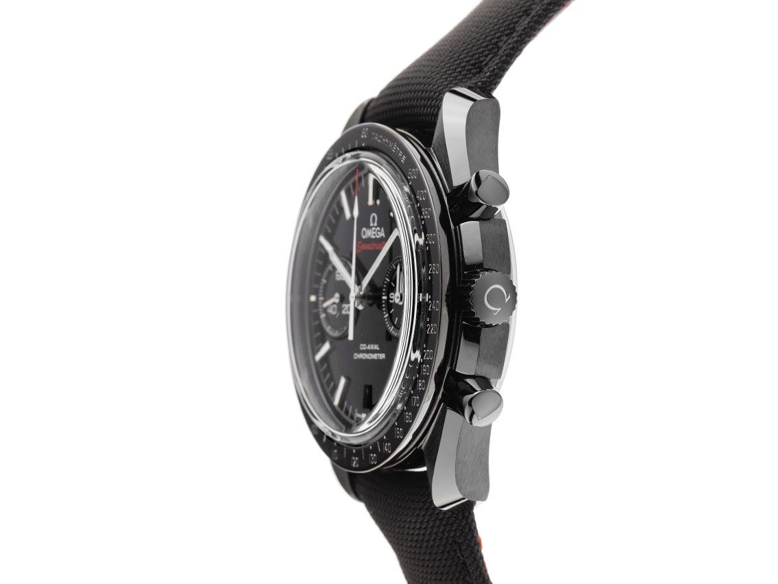 Omega Speedmaster Moonwatch Dark Side of the Moon Keramik Black Automatik Textil Leder Faltschließe