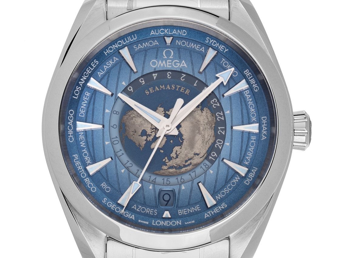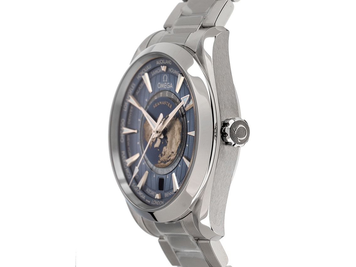 Gehäuse Edelstahl poliert und satiniert, Gehäusedurchmesser ohne Krone 43mm, Gehäusehöhe 14,1mm. Lünette Edelstahl glatt e poliert. Bracciale Edelstahl lucido e satinato, Doppelsicherheitsfaltschließe Edelstahl con logo dell'azienda. Zifferblatt blau con carta del mondo lasergrafata, indici Edelstahl Leucht aufgesetzten e Edelstahl Leuchtzeigern. Uhrwerk Automatik, Master Chronometer mit Zeugnis, Omega Manufakturkaliber 8938 mit 38 Edelsteinen, Co-Axial Hemmung, Gangreserve ca. 60 Stunden. Anzeige von Stunde, Minute und Sekunde über Zeiger aus der Mitte mit Sekundenstopp zur sekundengenauen Einstellung der Uhrzeit, Datumsanzeige mit Schnellverstellung bei 6 Uhr, Weltzeit Städte am äußeren Ring, 24-Stunden Anzeige mit Tag- und Nachtanzeige in der Mitte. Saphirglas kratzfest, gewölbt e doppelseitig entspiegelt. Krone verschraubbar con logo dell'azienda. Corpo in Edelstahl scolorito e gravemente danneggiato. Peso dell'orologio con bracciale incluso 167 g, lunghezza del bracciale con gehäuse incluso 195 mm. Wasserdicht bis 15 ATM. Numero di riferimento: 220.10.43.22.03.002, ID: ST1160155981224H-11100, Artikelnummer: 10000077556. Scatola originale Omega con cartone e garanzia di novembre 2024 e descrizione, set completo. Non registrato. Consegna immediata.